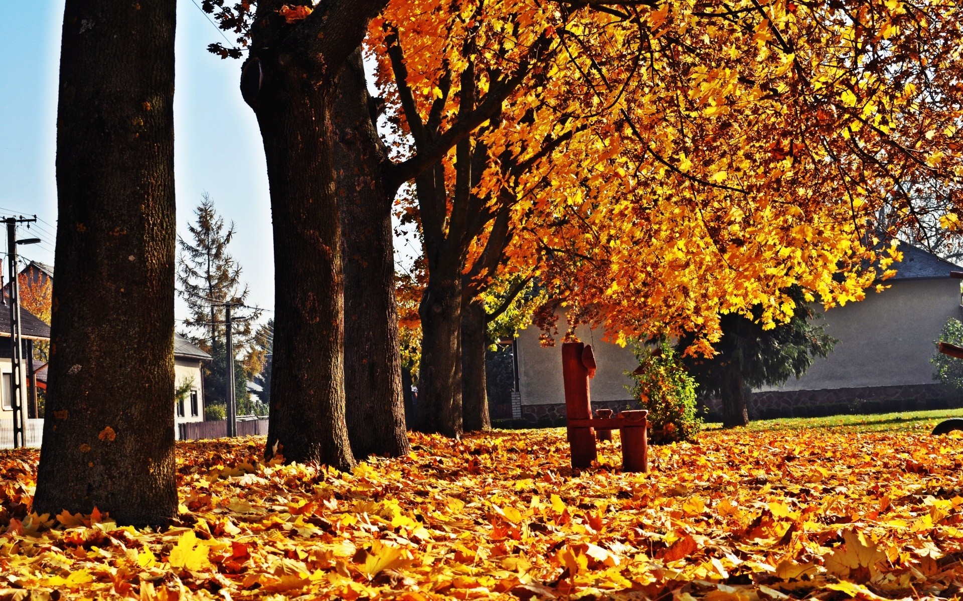 Klony stały prosto w rzędzie. Jesień