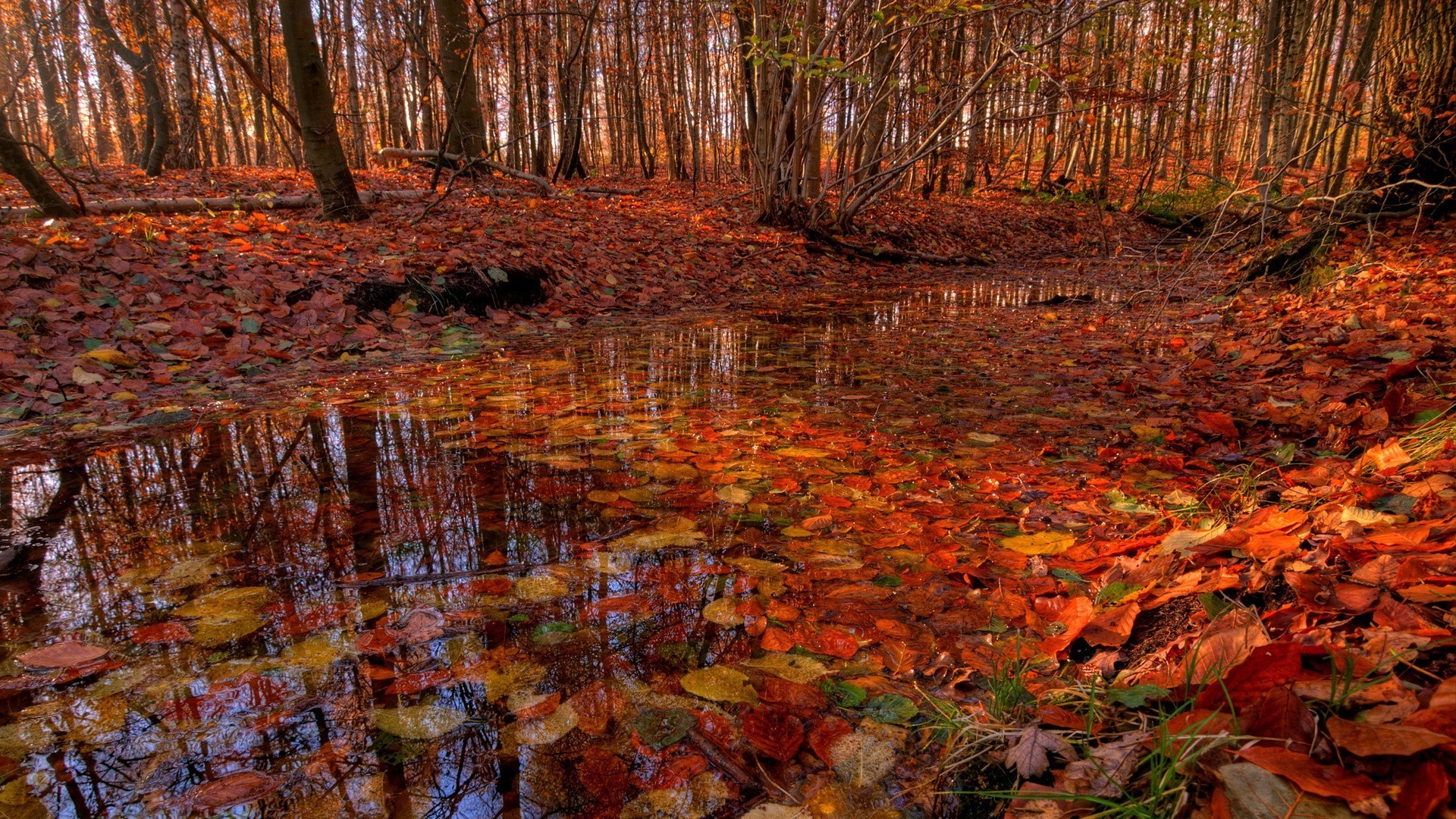 Opadły liście jesienny las, konary ciągną się z błaganiem w niebo