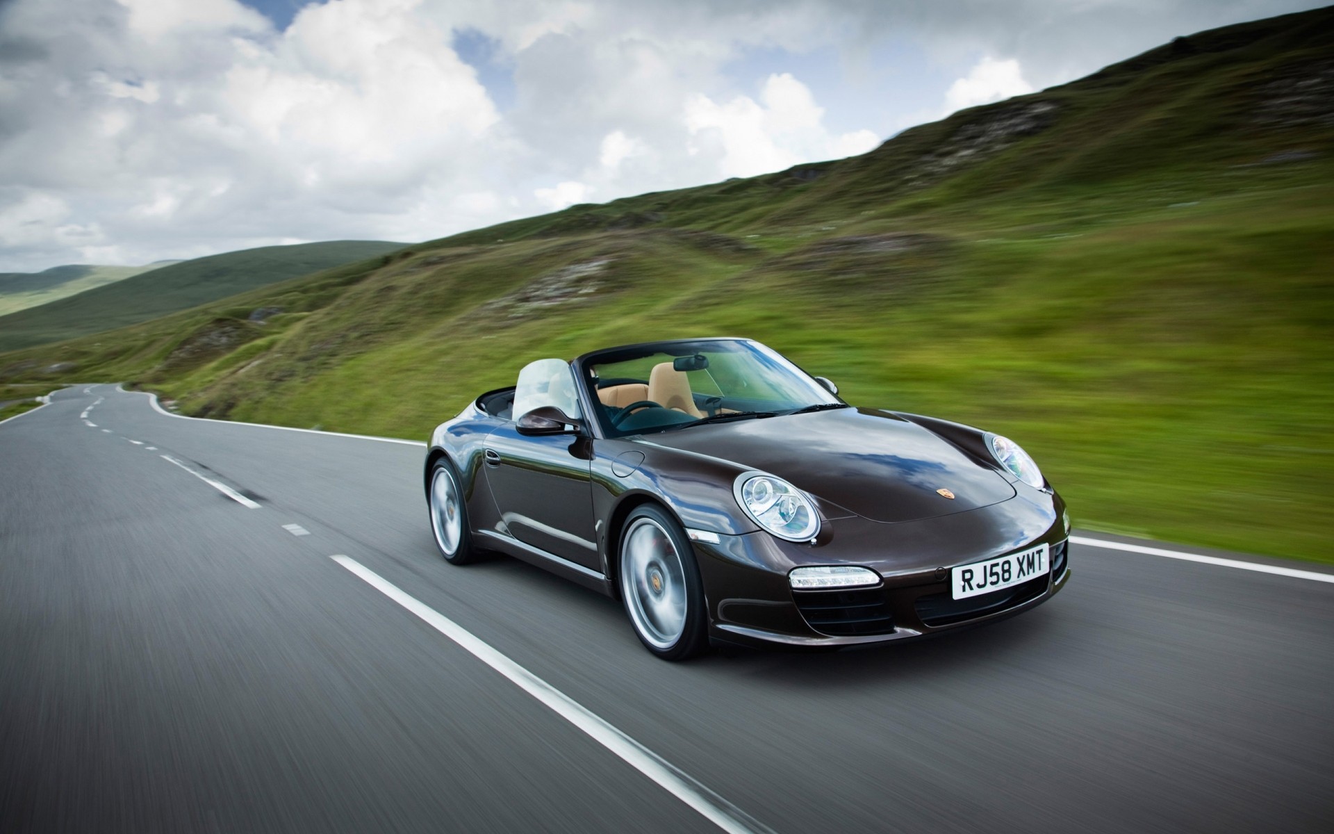 Zielone Porsche na chodniku przed nowoczesnym budynkiem