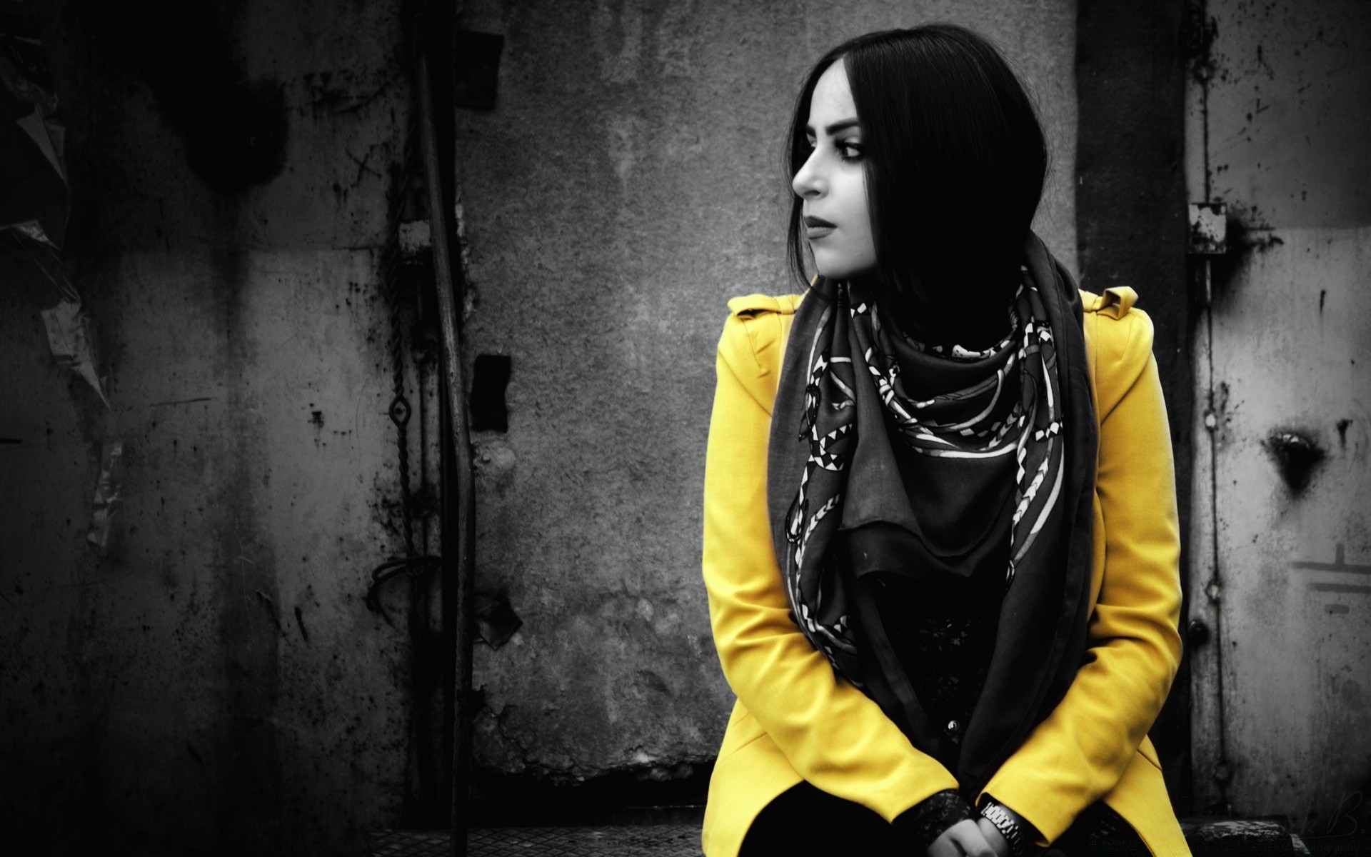 Monochromatyczny portret piosenkarza z niezwykłą fryzurą