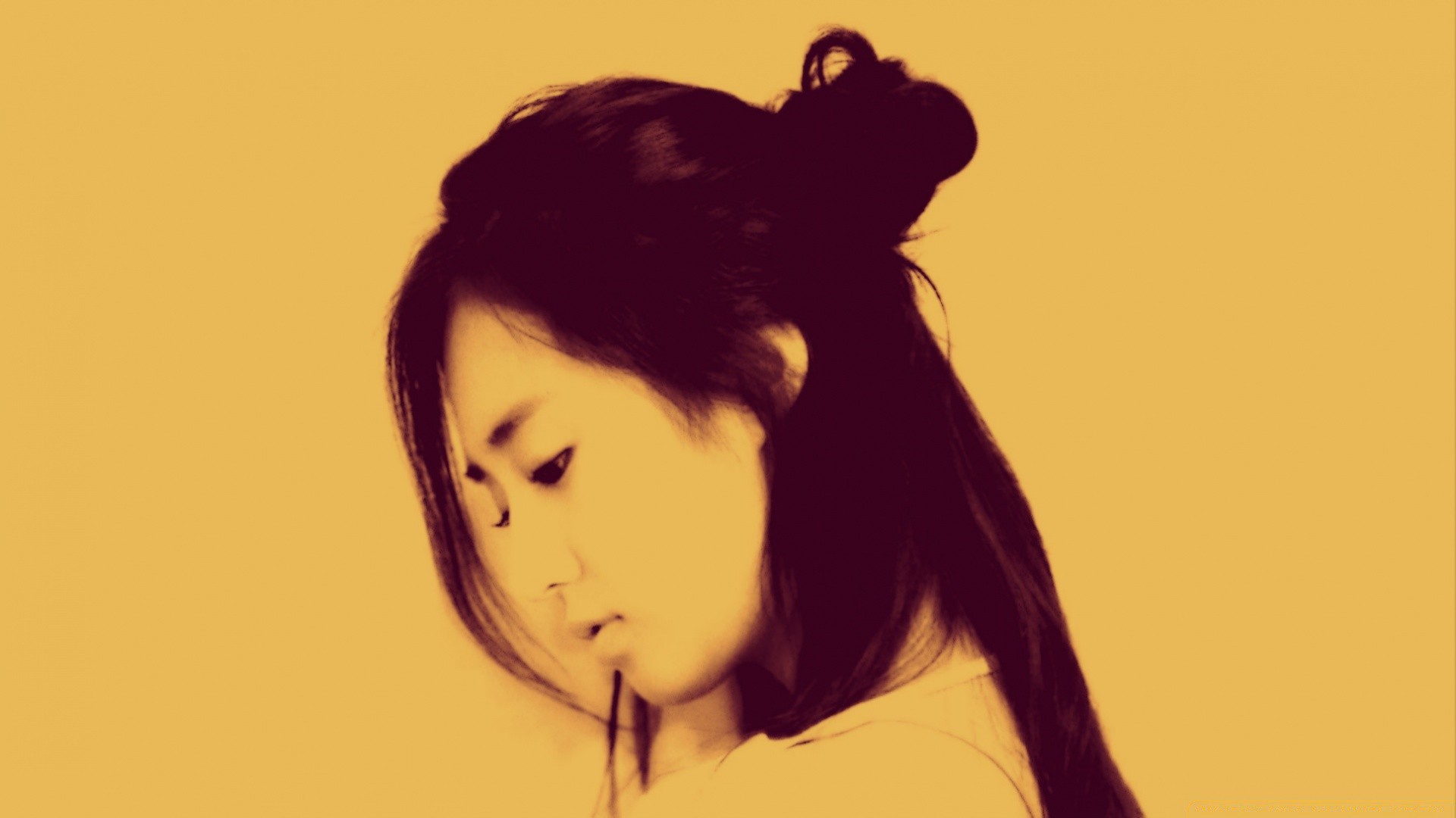 Dziewczyna z profilu na żółtym tle