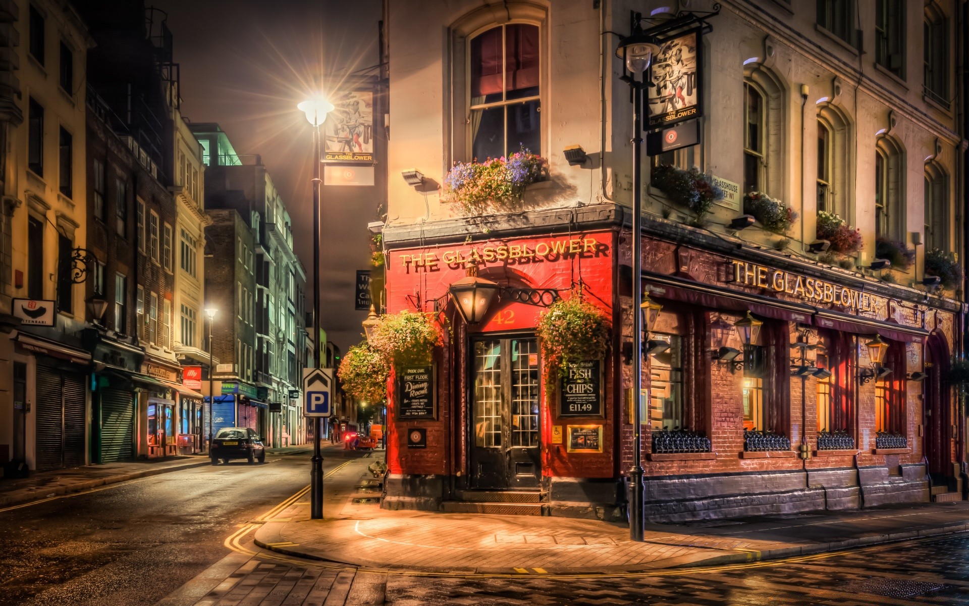 Wieczór ulica Cafe Bar maszyny Wieża Wieża telewizyjna