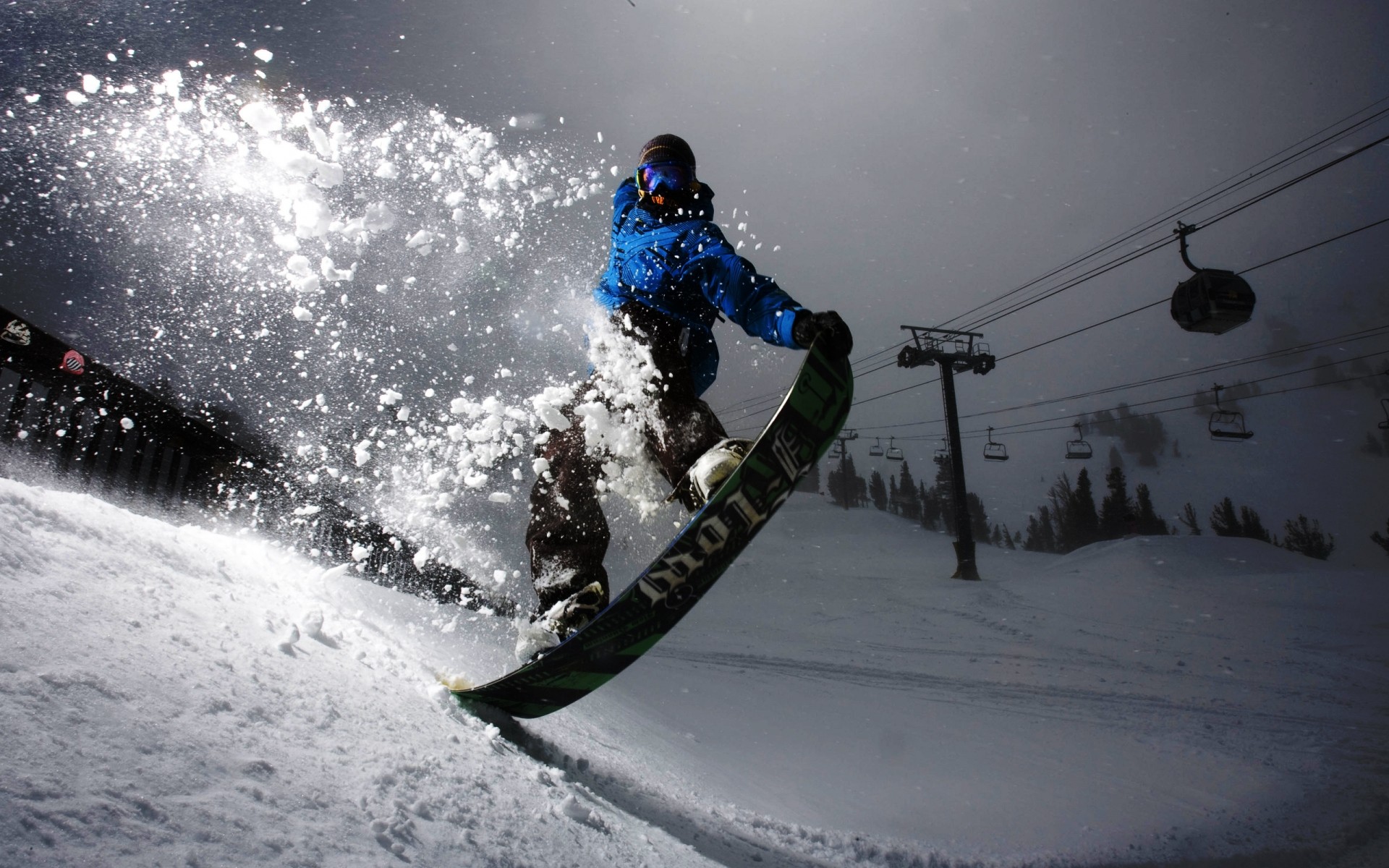 Ekstremalny zjazd snowboardzisty na zaśnieżonym zjeździe