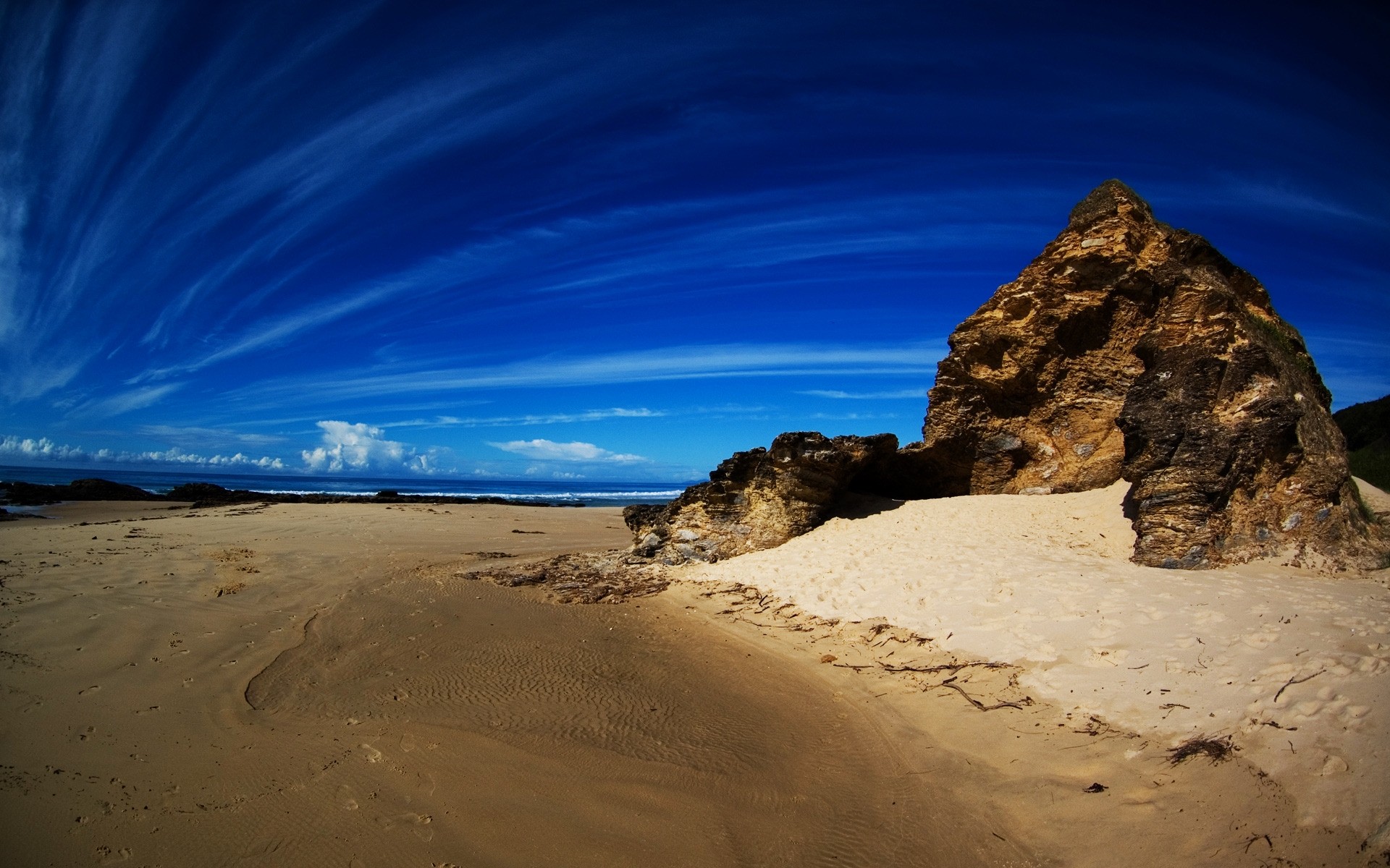 Piaszczysta plaża ze skałą nad oceanem