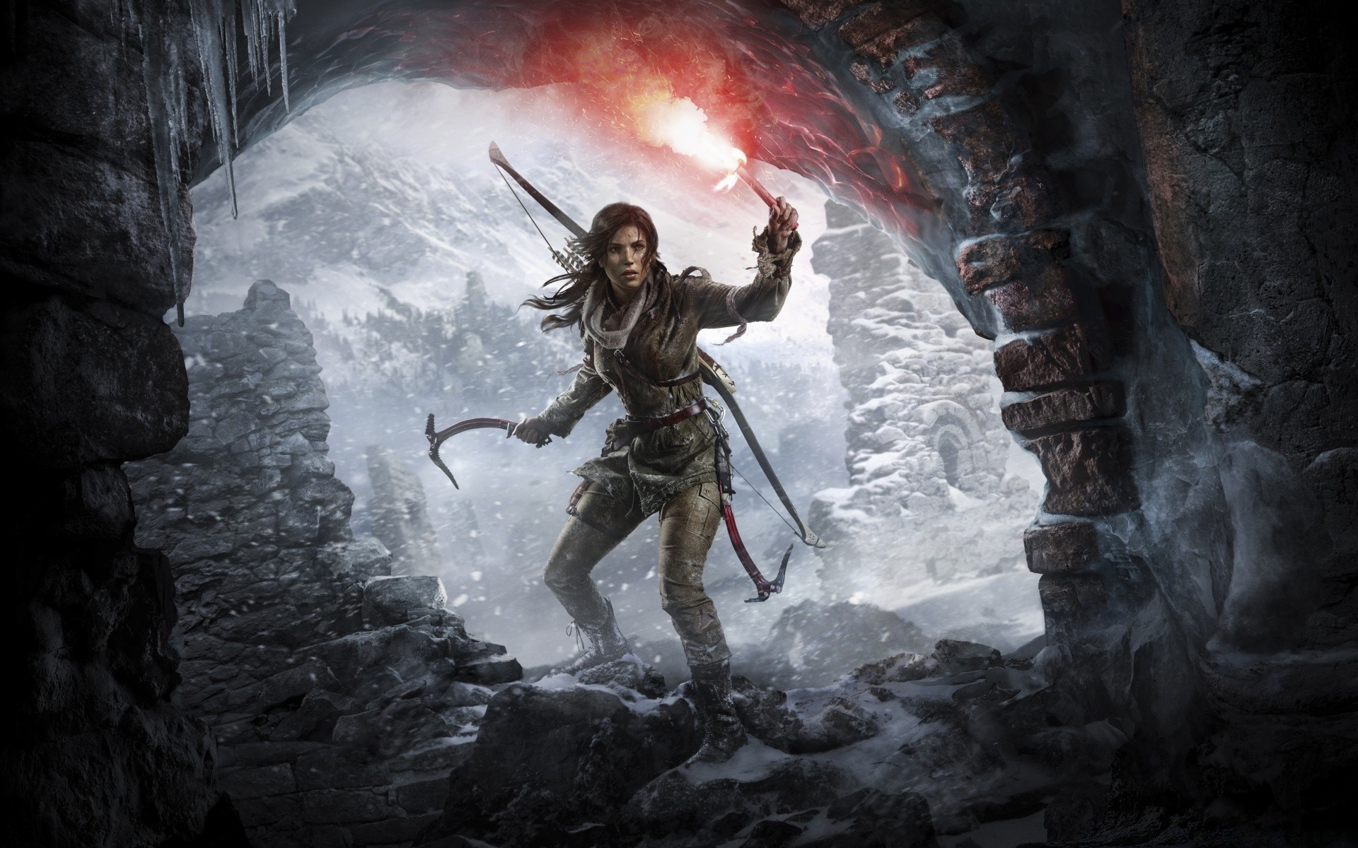 Piękna kobieta z bronią w jaskini
