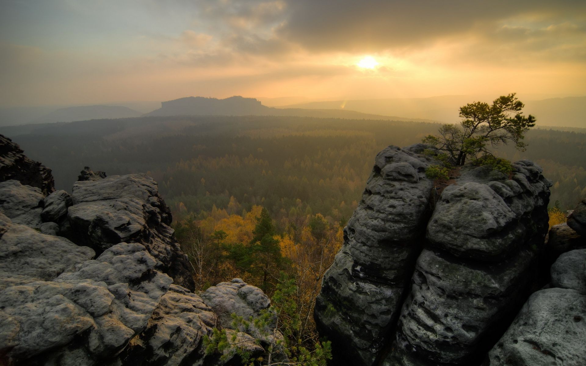 Jaskinie tunele skąpane w słońcu na tle zielonego lasu