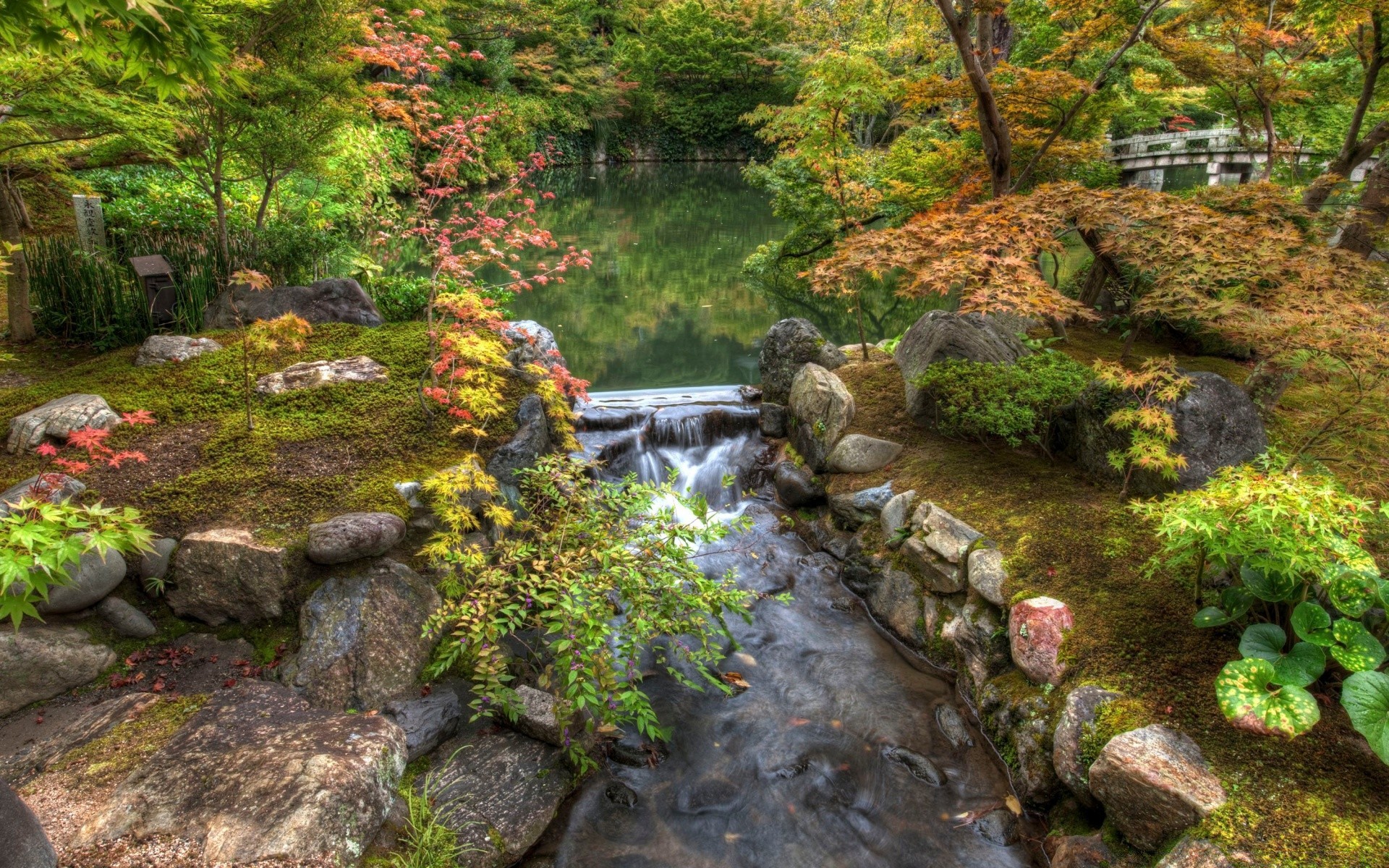 Krajobraz. kaskada. lelie drzewa. zarezerwowane miejsce