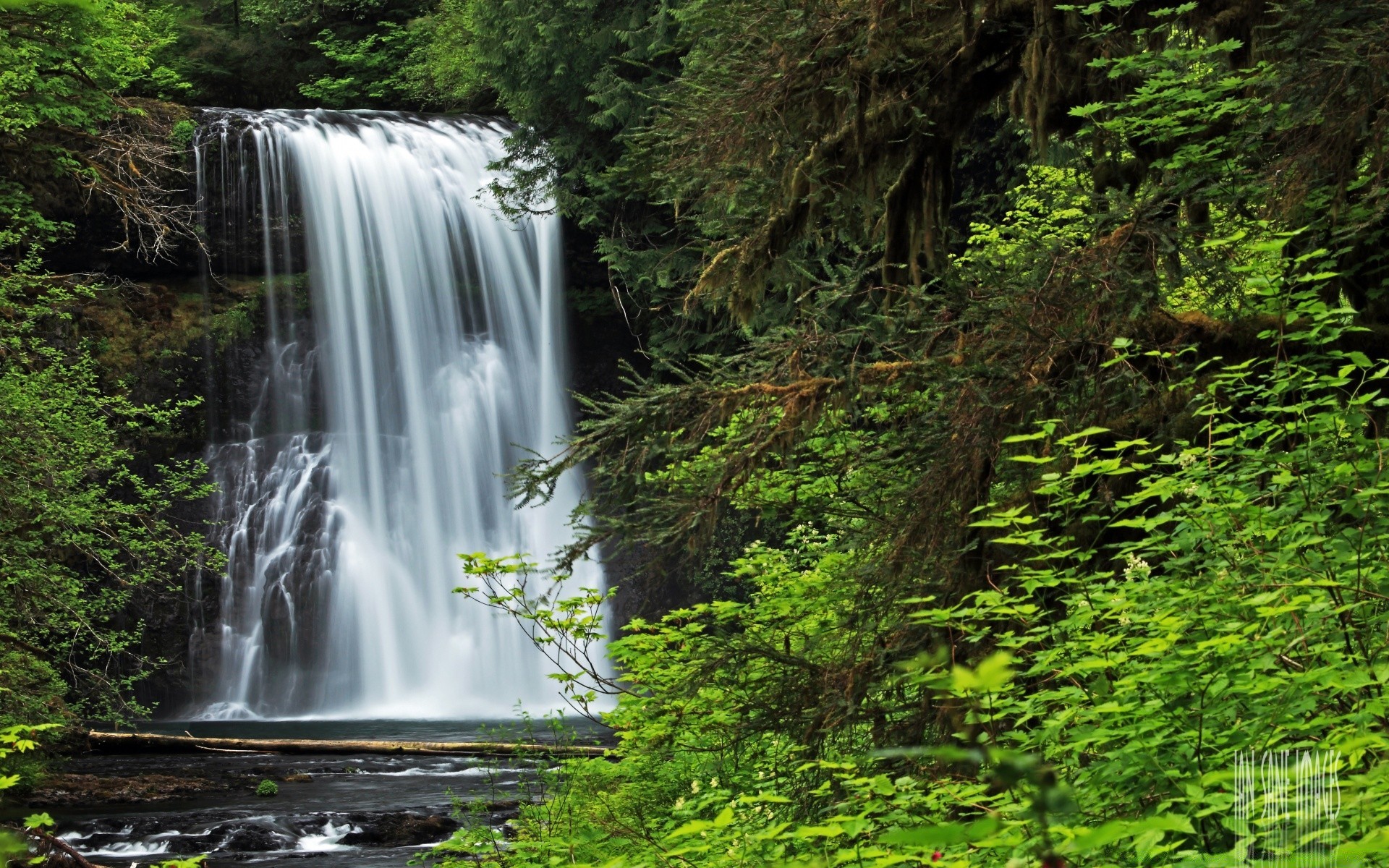 Wielostopniowy piękny wodospad w lesie