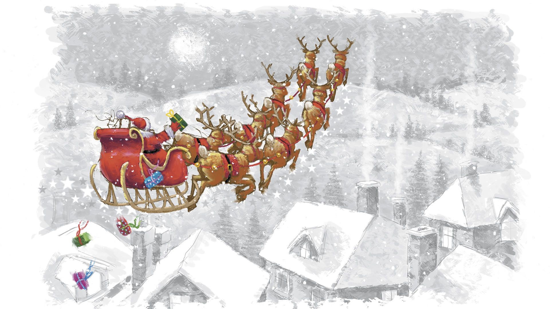 Kartka świąteczna z zabawkami i świerkowymi gałęziami