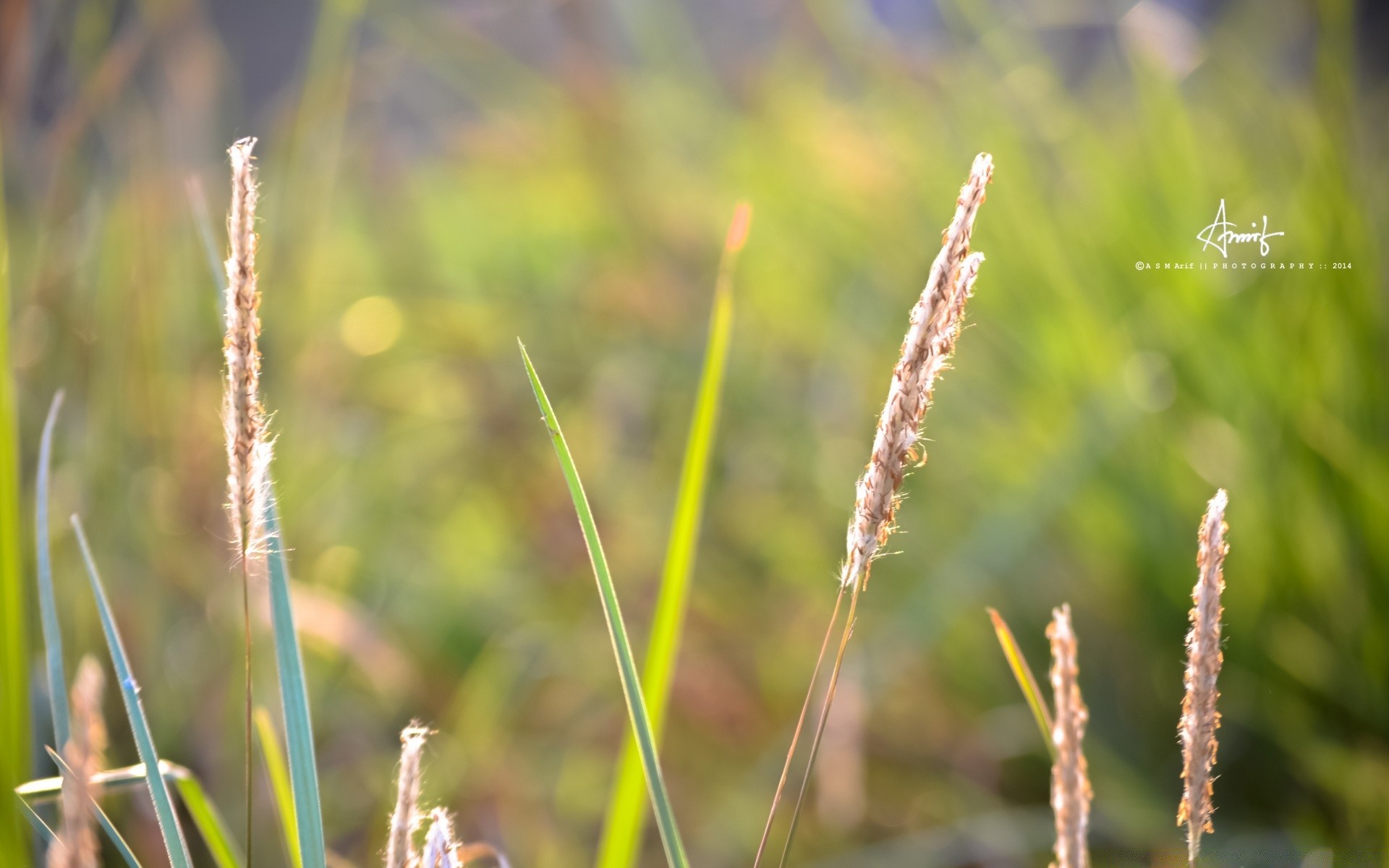 Wysuszone źdźbła trawy z nasionami na zielonym tle