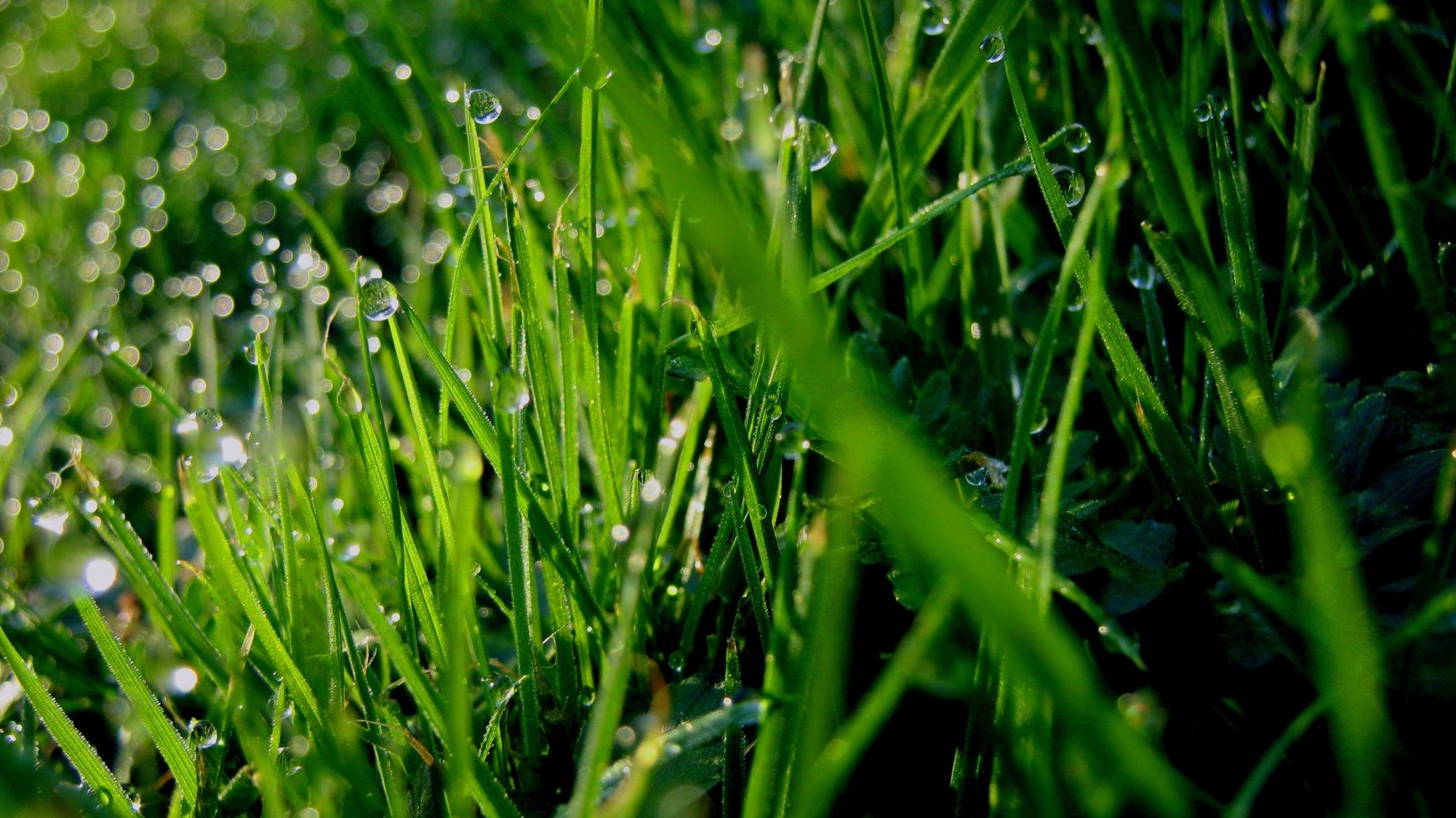Krople deszczu nad młodą trawą