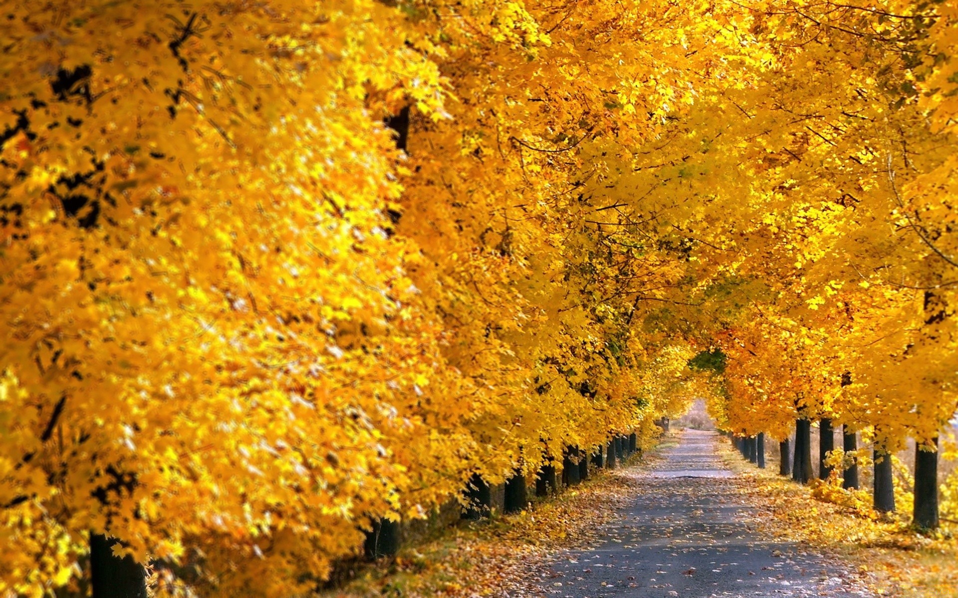 Aleja w parku jesiennym. Żółte drzewa