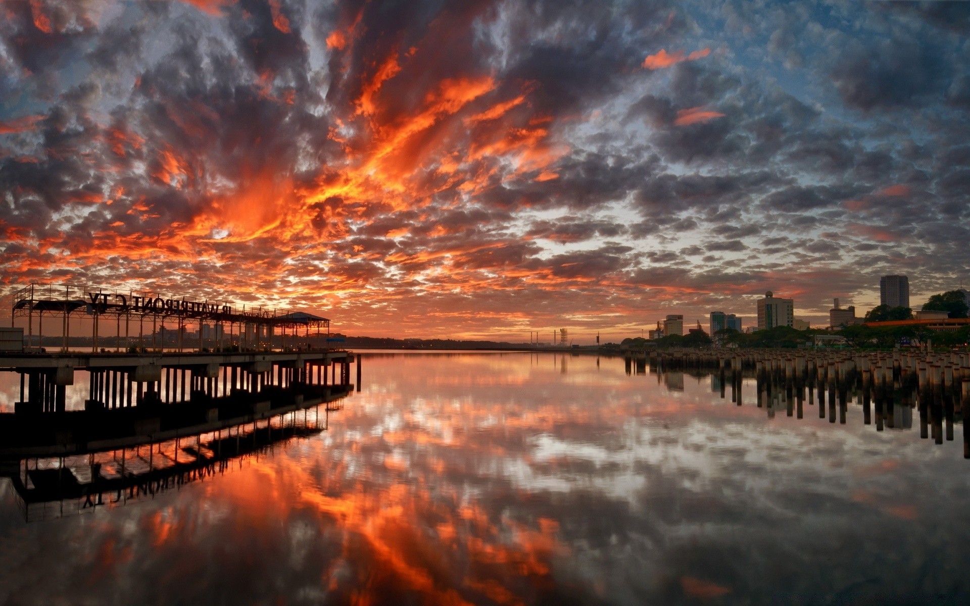 Z rzeki wystaje pomnik w kształcie ogona srebrnej ryby na tle zachodzącego księżyca i nocnego miastaZ rzeki wystaje pomnik w kształcie ogona srebrnej ryby na tle zachodzącego Księżyca i nocnego miasta