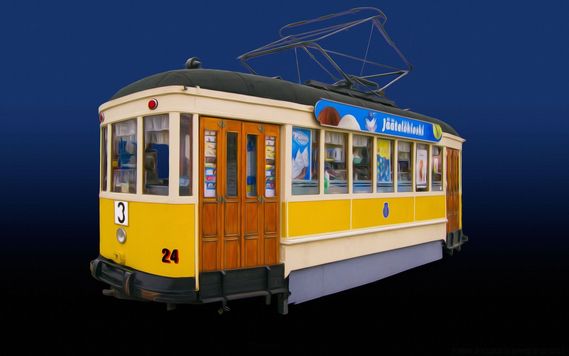 Rysunek poruszającego się ognistego samochodu na tle drogi i mostu