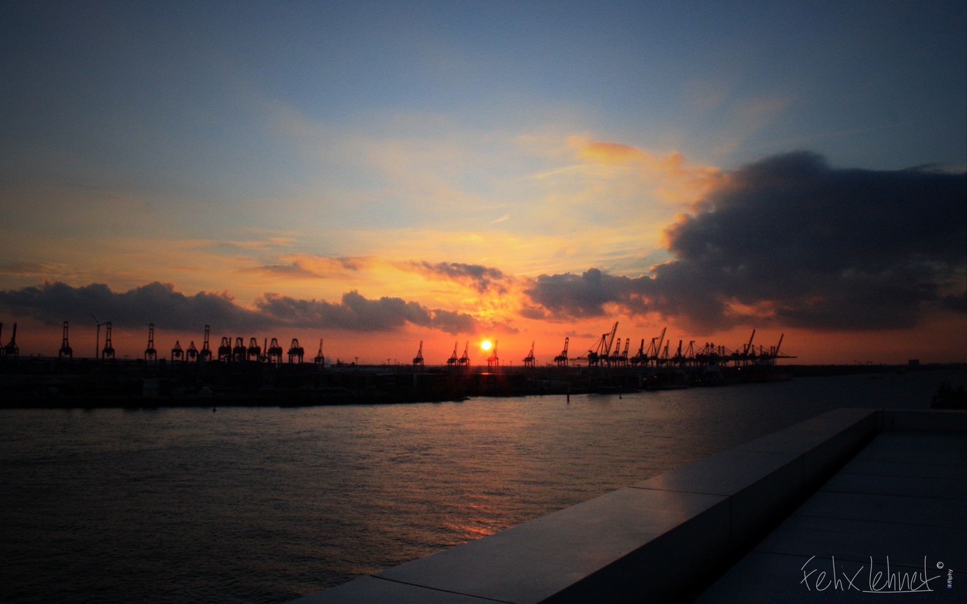 Zachód słońca nad rzeką wieczorem