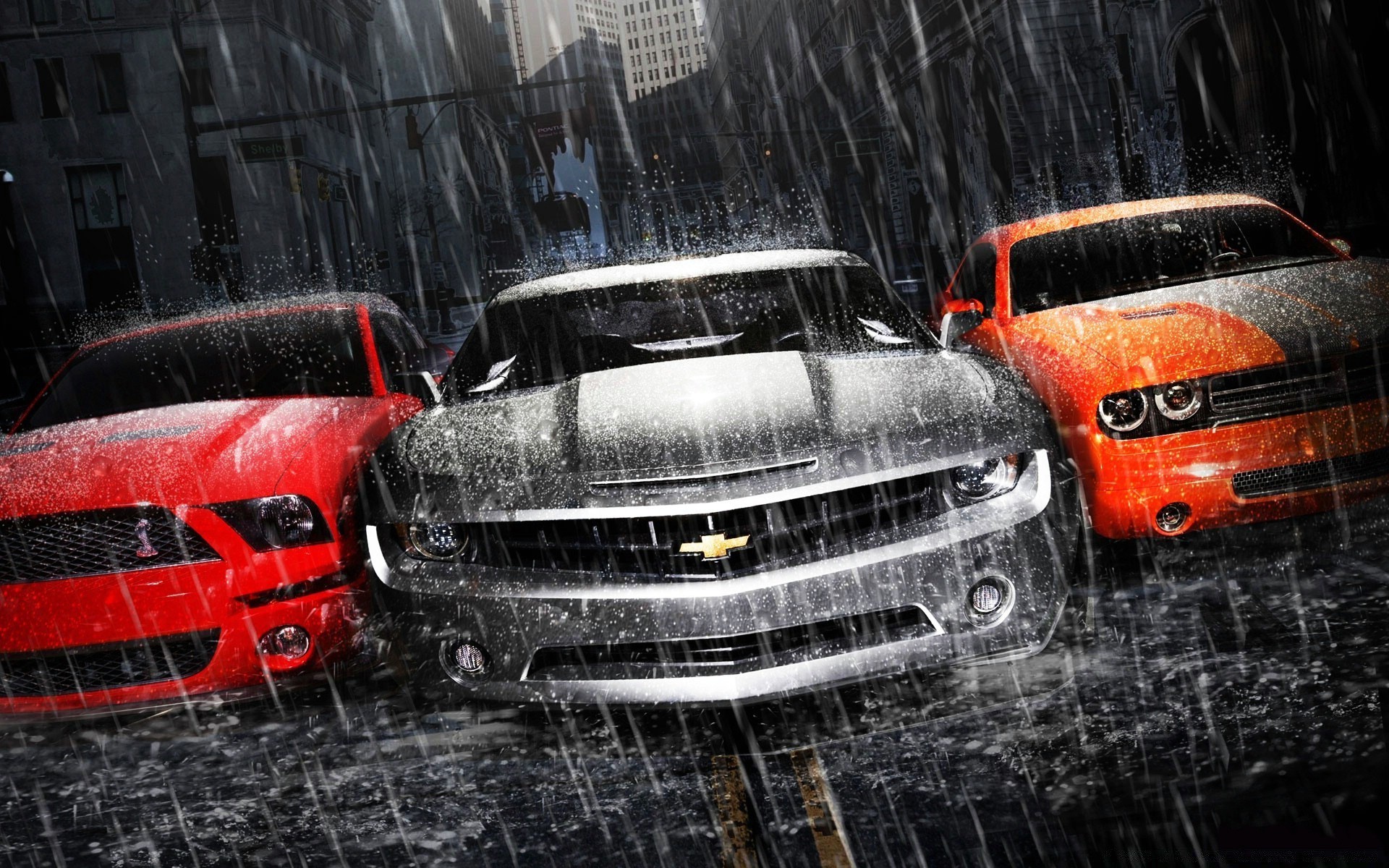 Samochody w mieście w deszczu