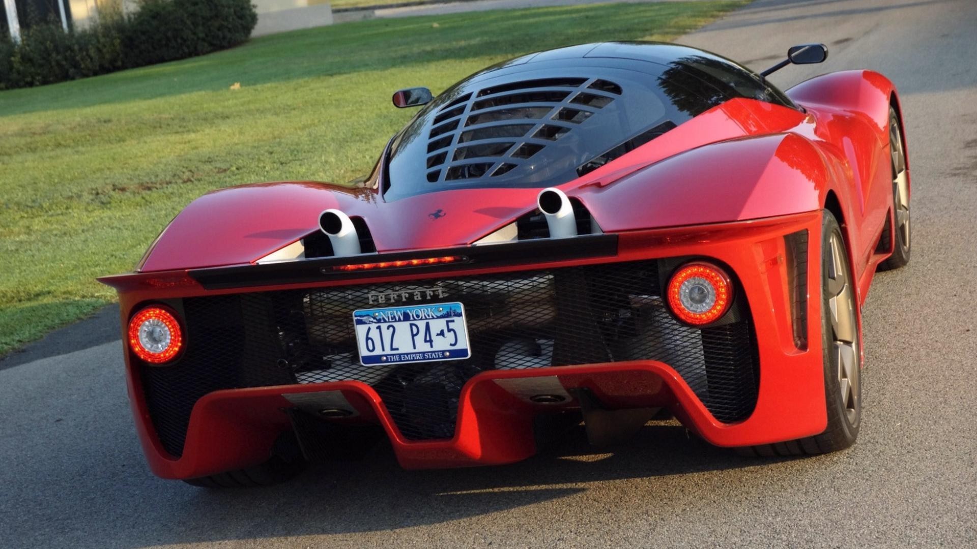 Czerwony samochód sportowy na asfaltowej drodze obok zielonego trawnika