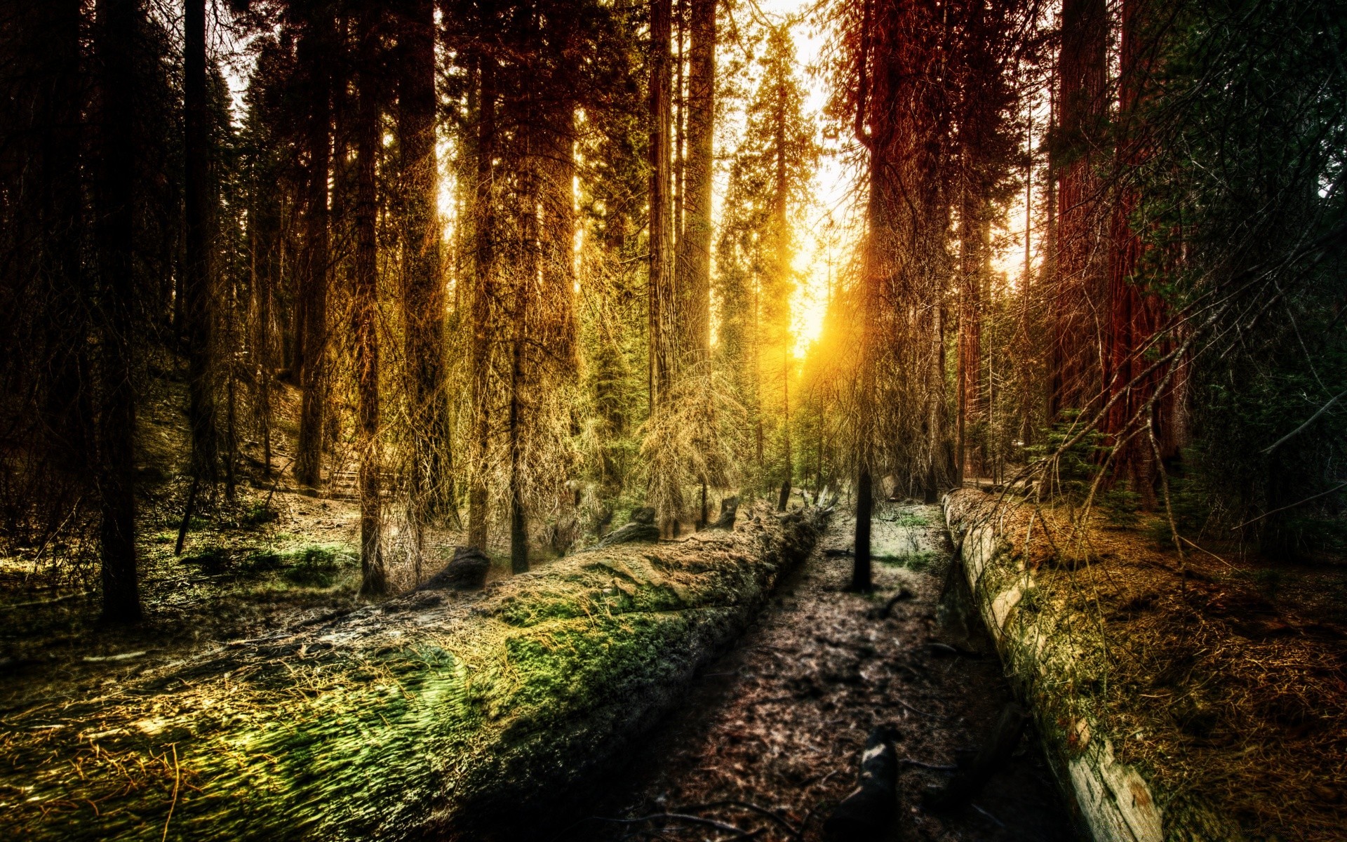 Krajobraz zachód słońca na tle zielonych pól i gór