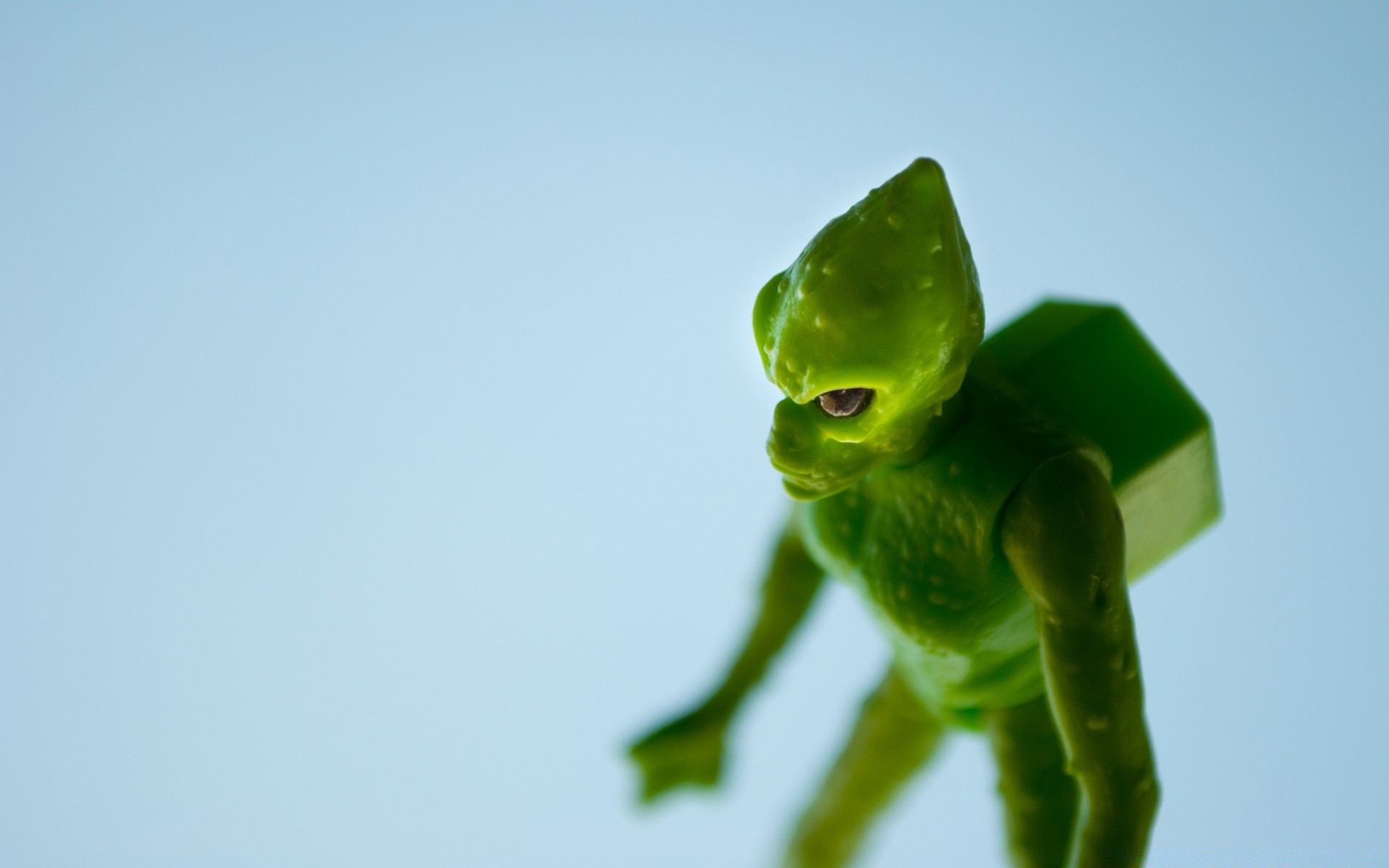Zielony kosmita z ciężarem na plecach