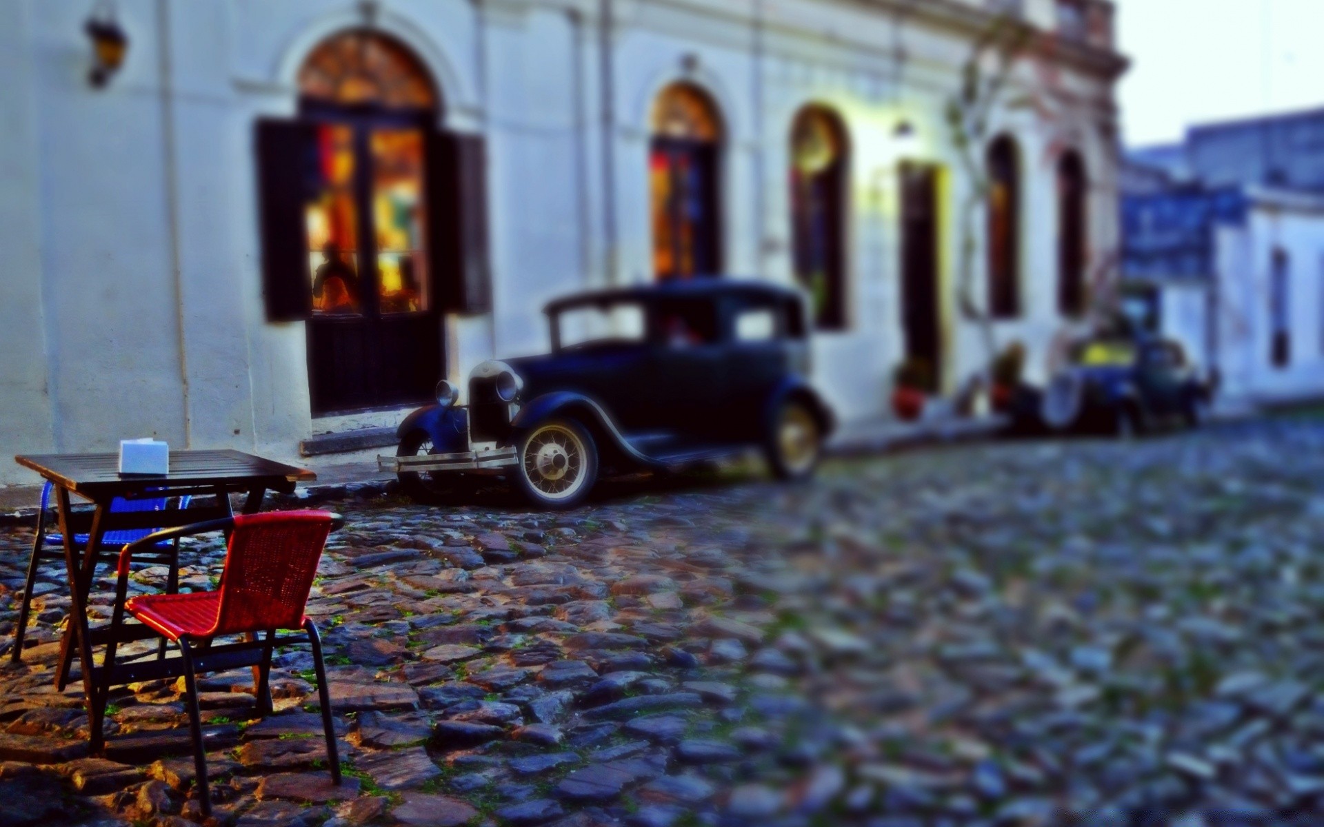 Samochód w Paryżu na kamiennym chodniku