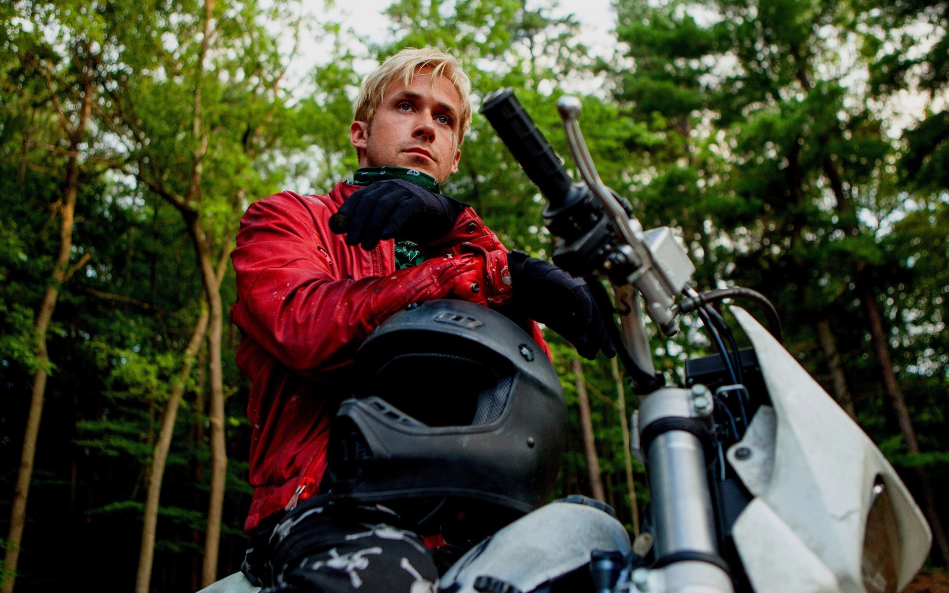 Mężczyzna siedzi na motocyklu z kaskiem w rękach