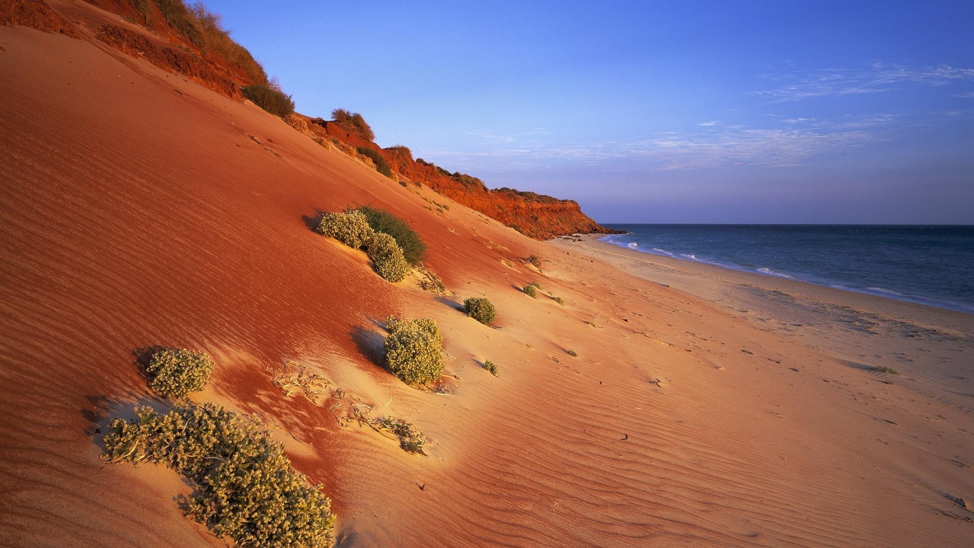 Palmy i chaty na wybrzeżu tropikalnej wyspy