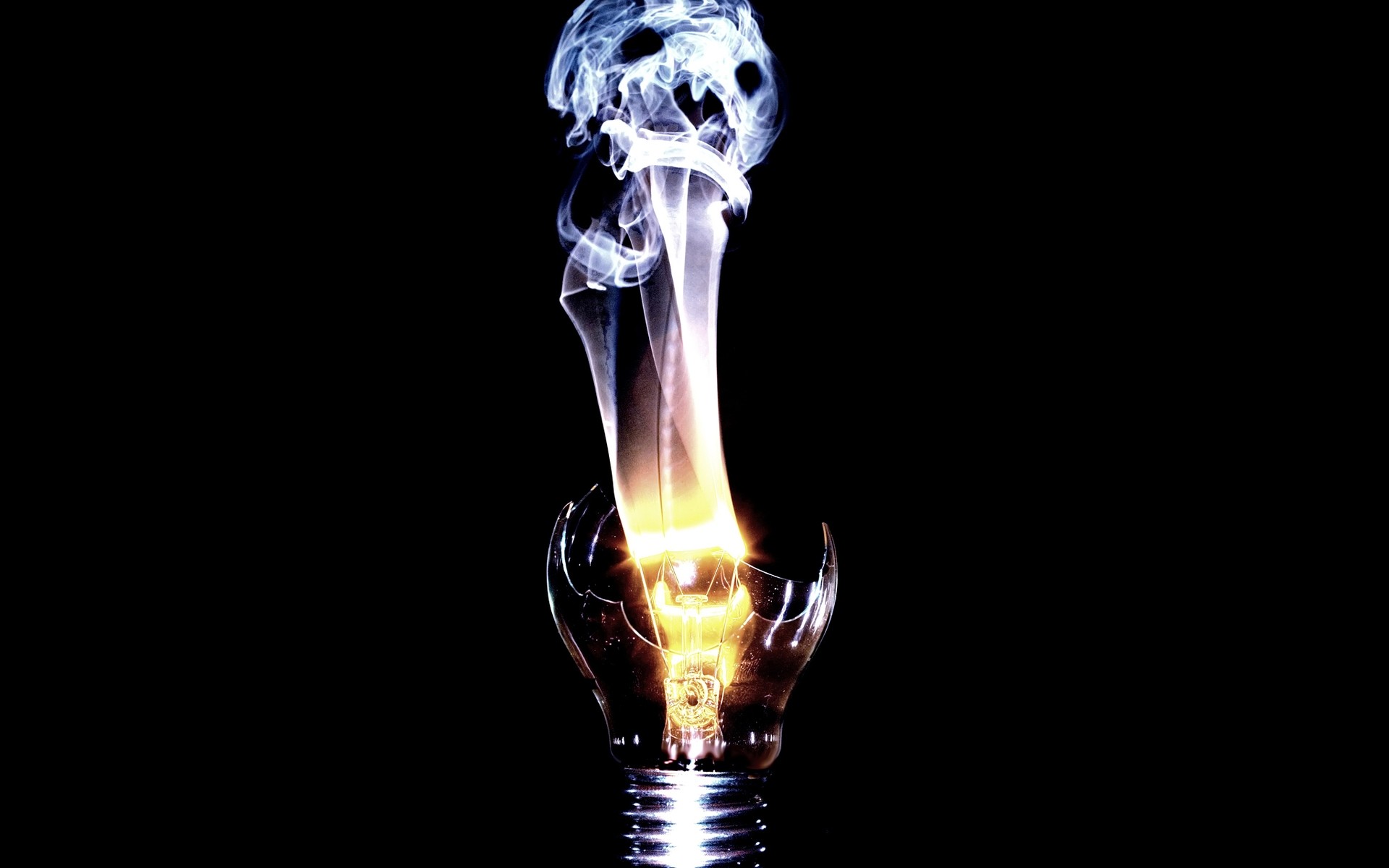 Ognisty płomień z rozbitej lampy