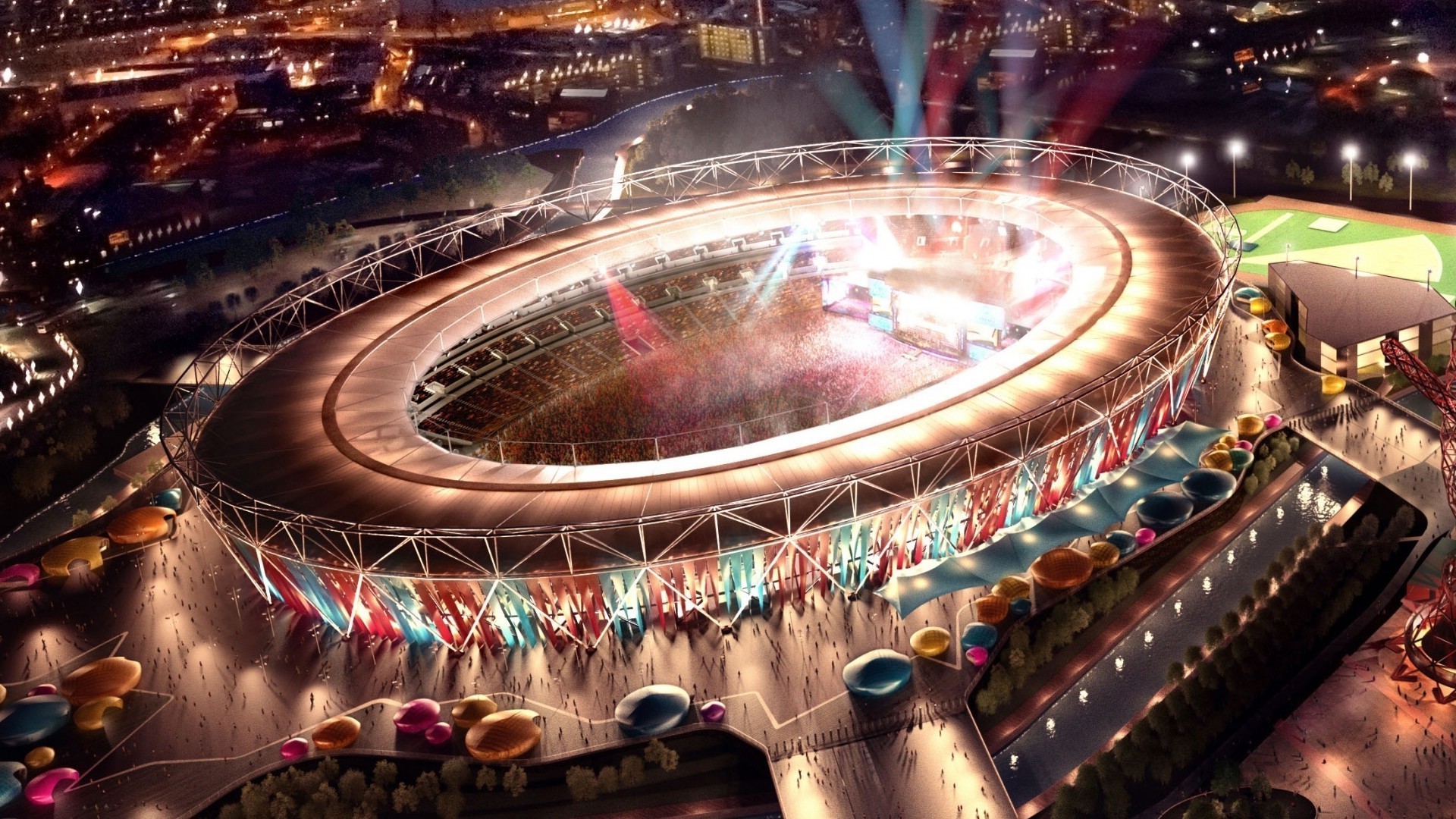 Widok z góry na lśniący światłami Stadion