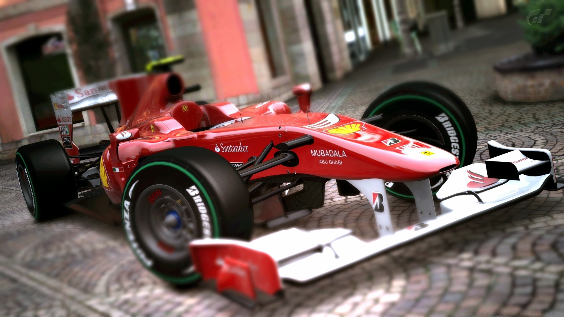 Czerwony samochód w mieście w grze komputerowej gran turismo