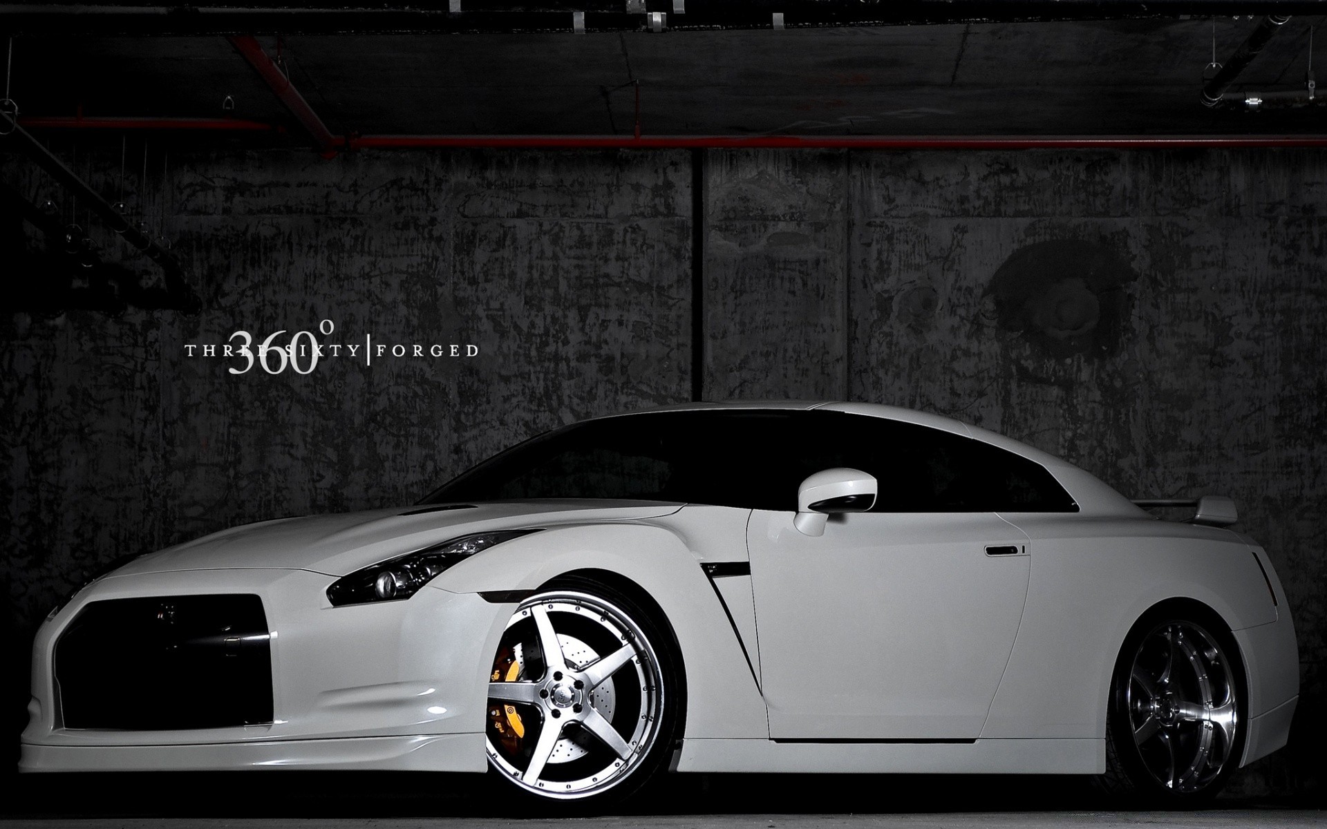Sportowy czarny samochód na drodze pod ścianą pod dachem