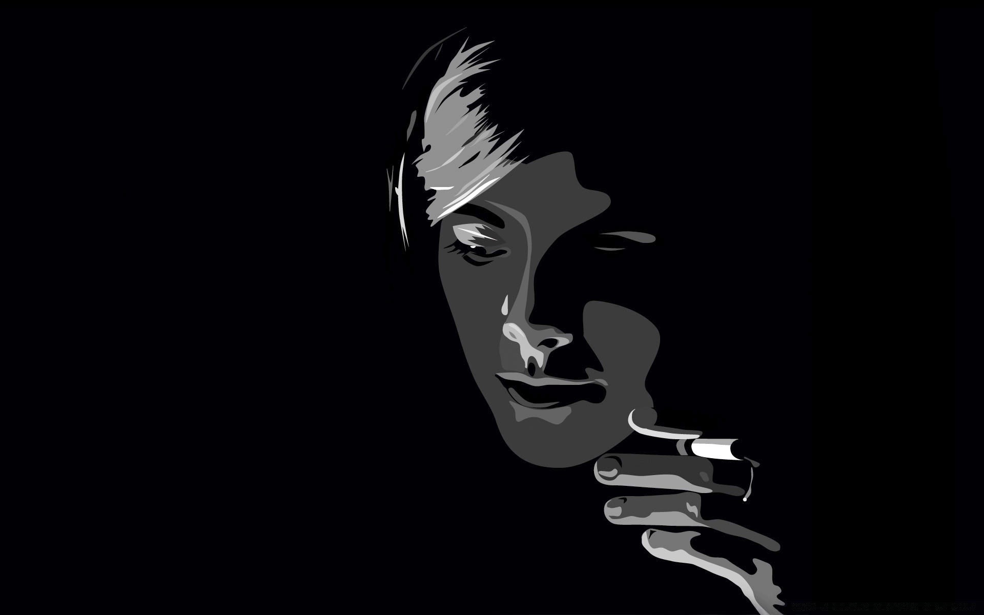 Obraz twarzy i dłoni osoby w czerni i bieli