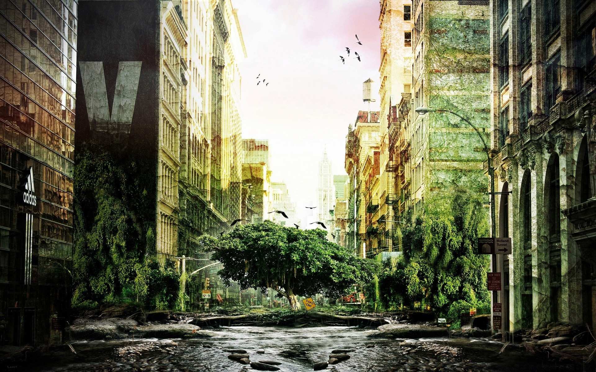 Drzewo wyrosło na środku drogi w opuszczonym mieście