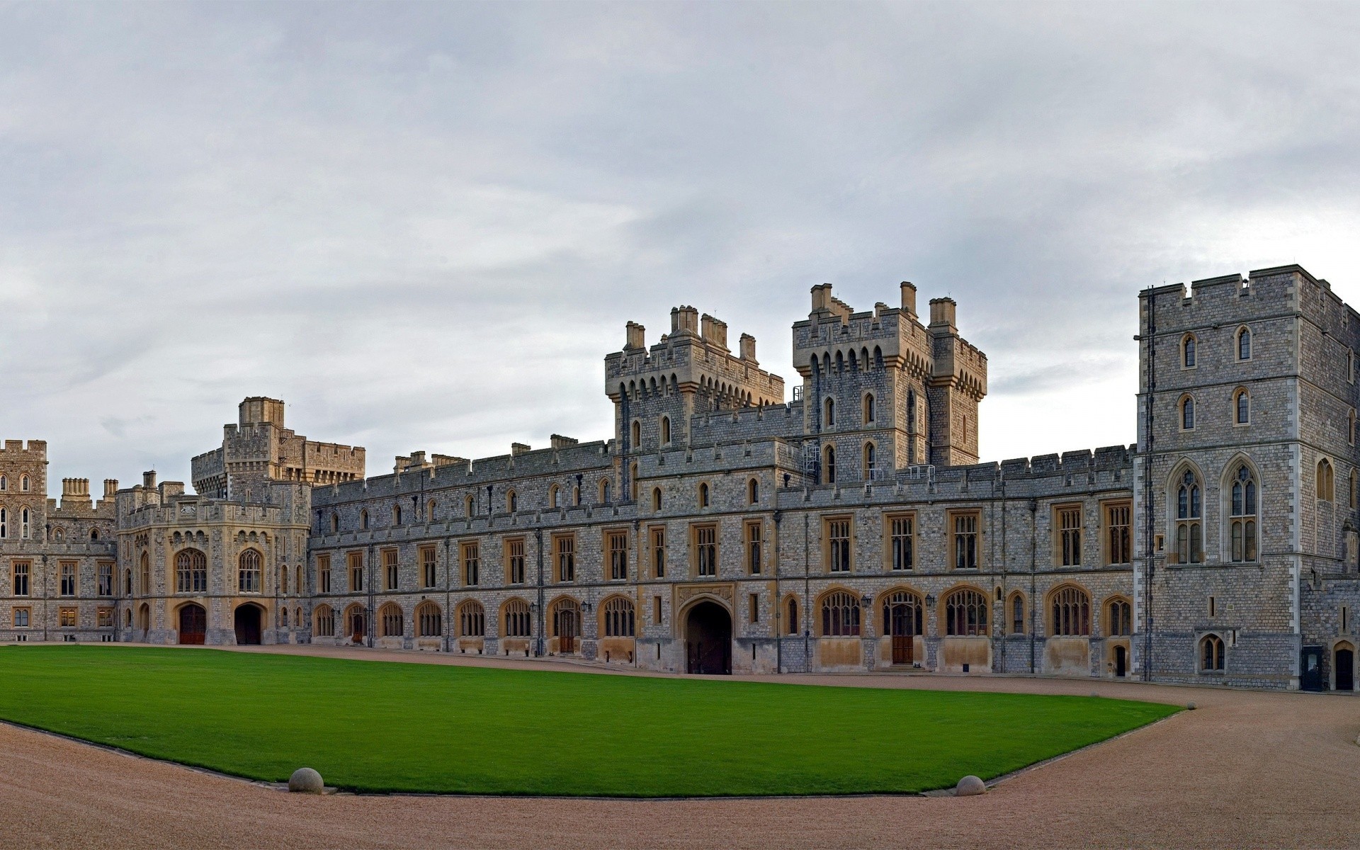 Zabytkowa architektura, zamek z zielonym trawnikiem