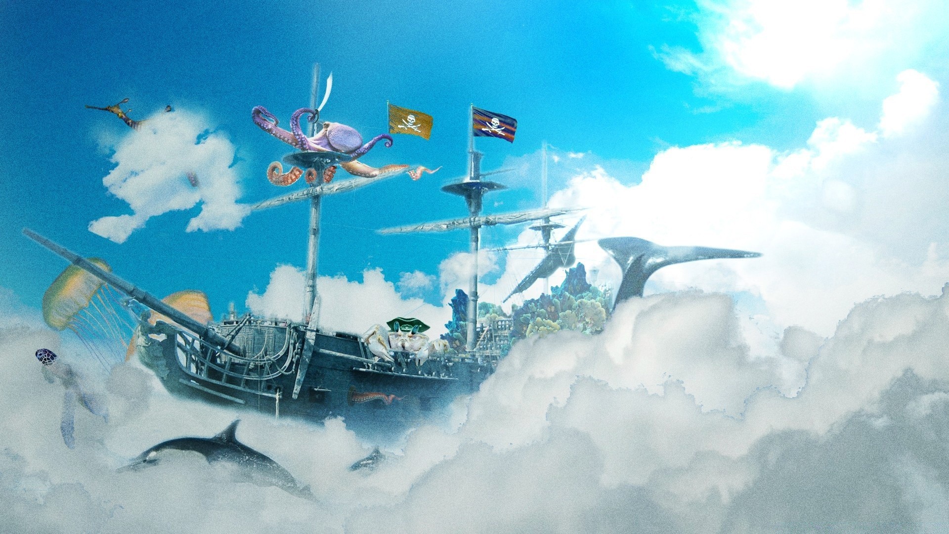 Statek wielorybów płynie po niebie