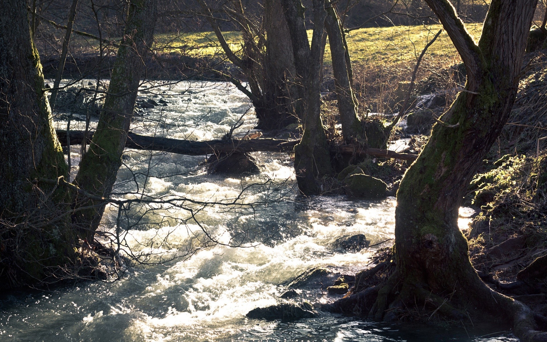 Burzliwa rzeka płynie wśród drzew