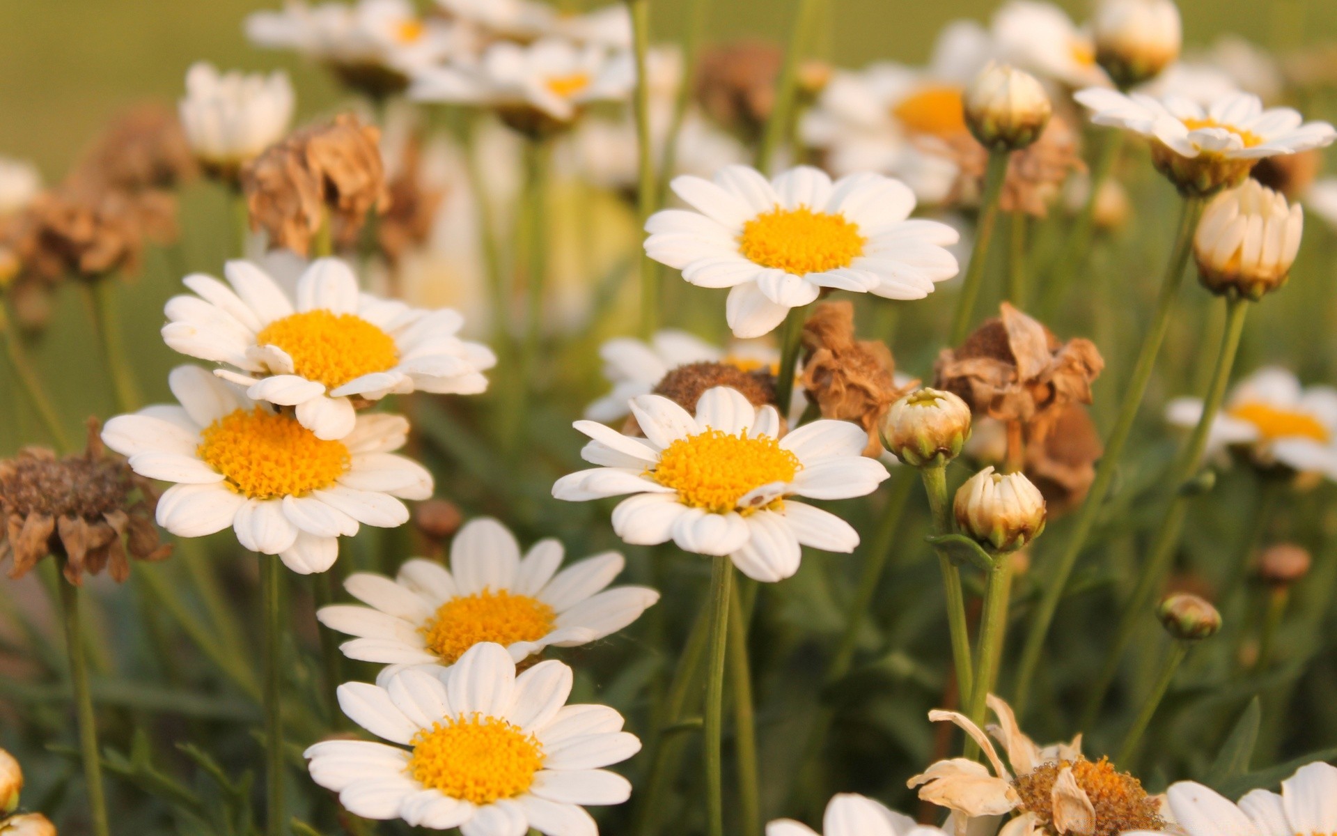 Puszyste pole białych stokrotek