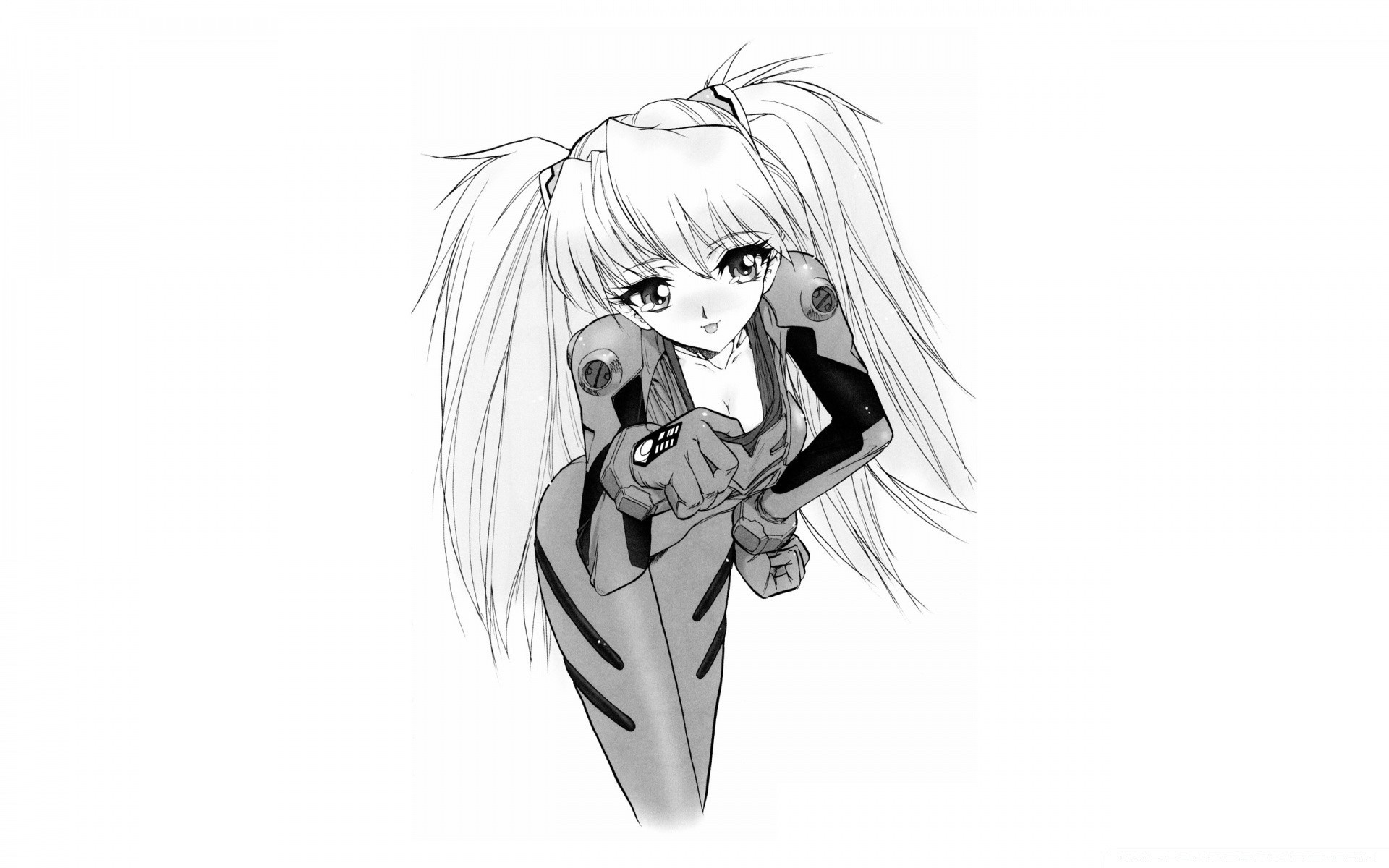 Piękna blondynka anime w pasiastym stroju
