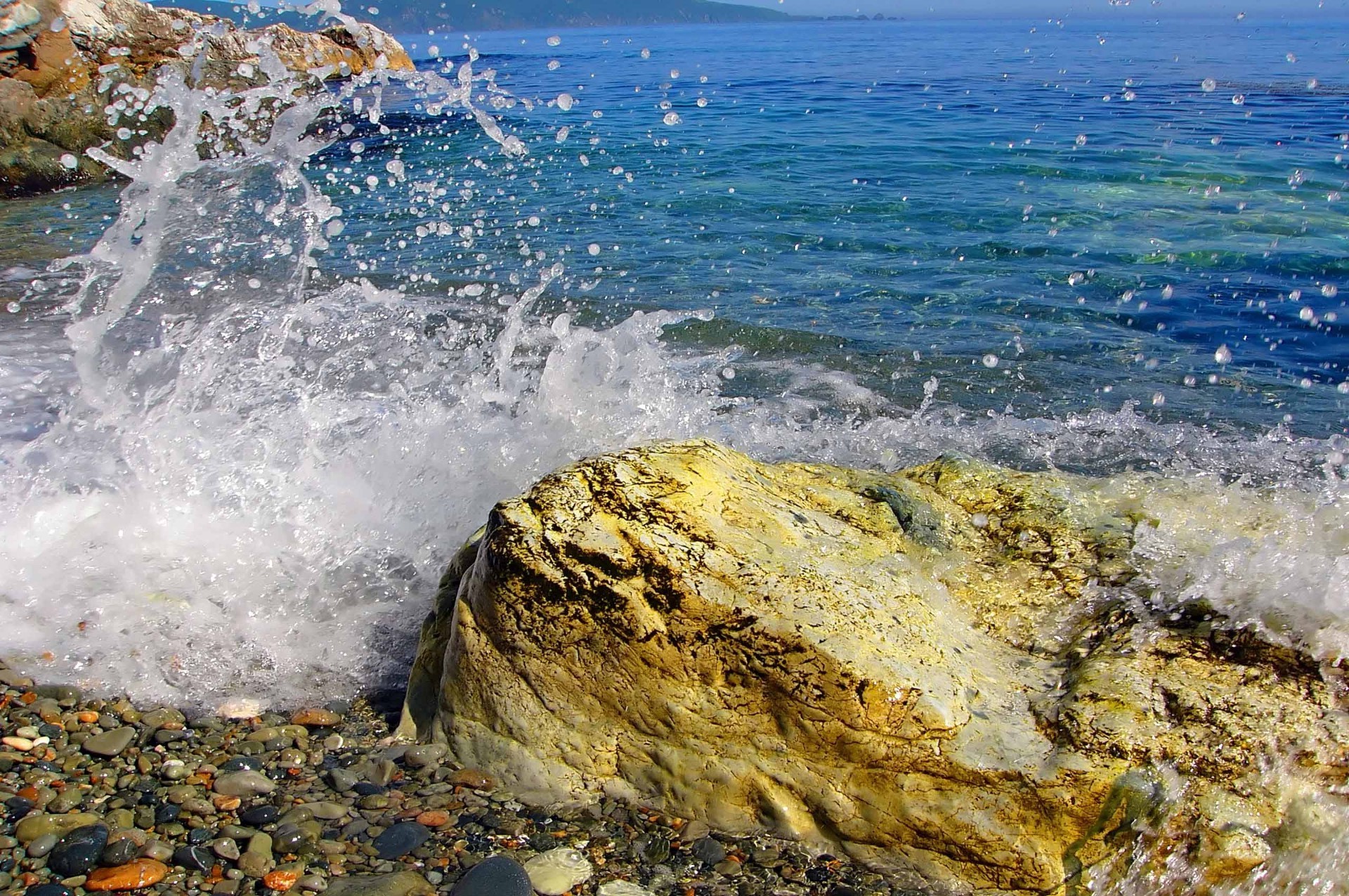 Pomarańczowy zachód słońca nad morzem z małymi falami