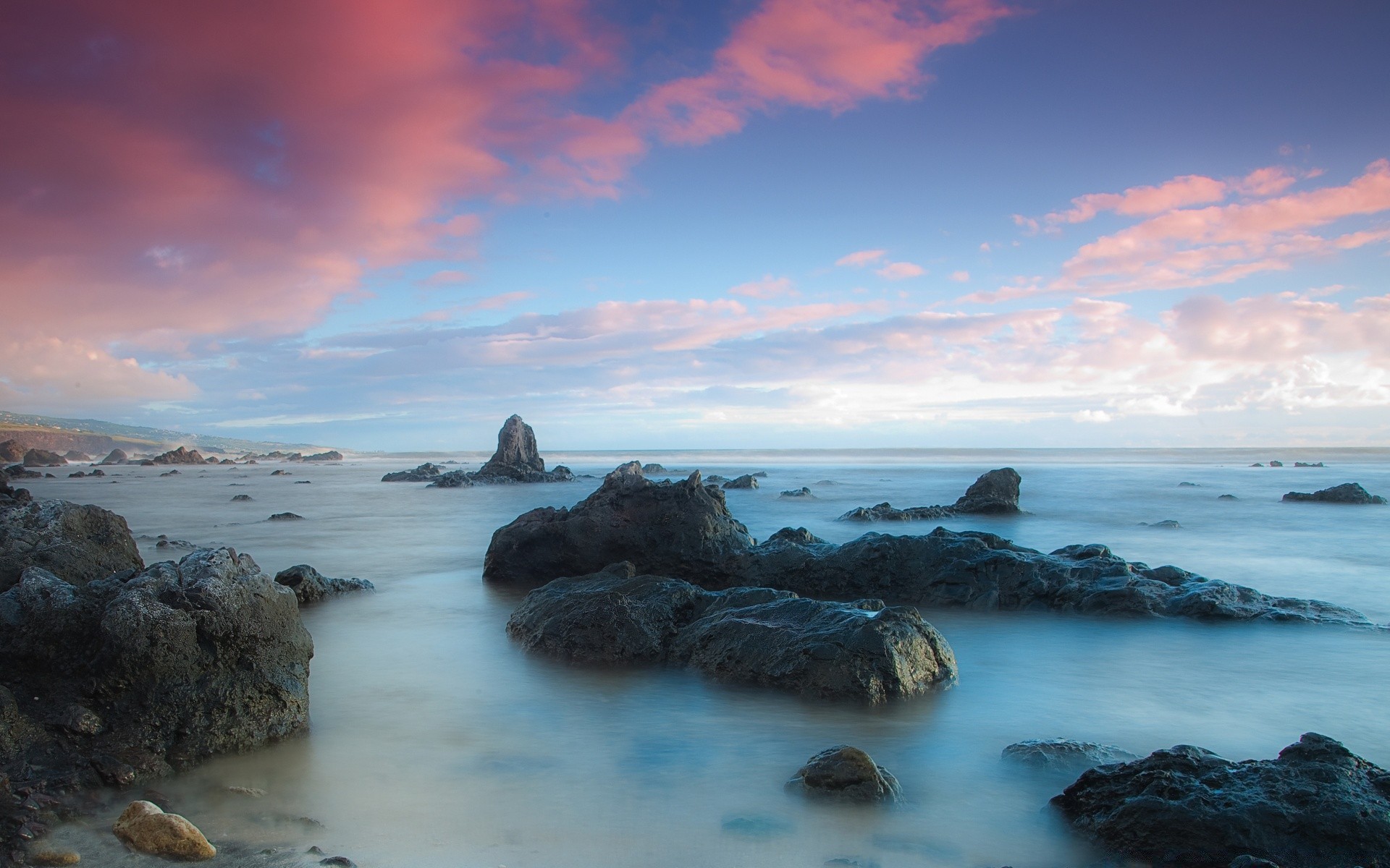 Wybrzeże morskie z ciekawymi kompozycjami przyrodniczymi