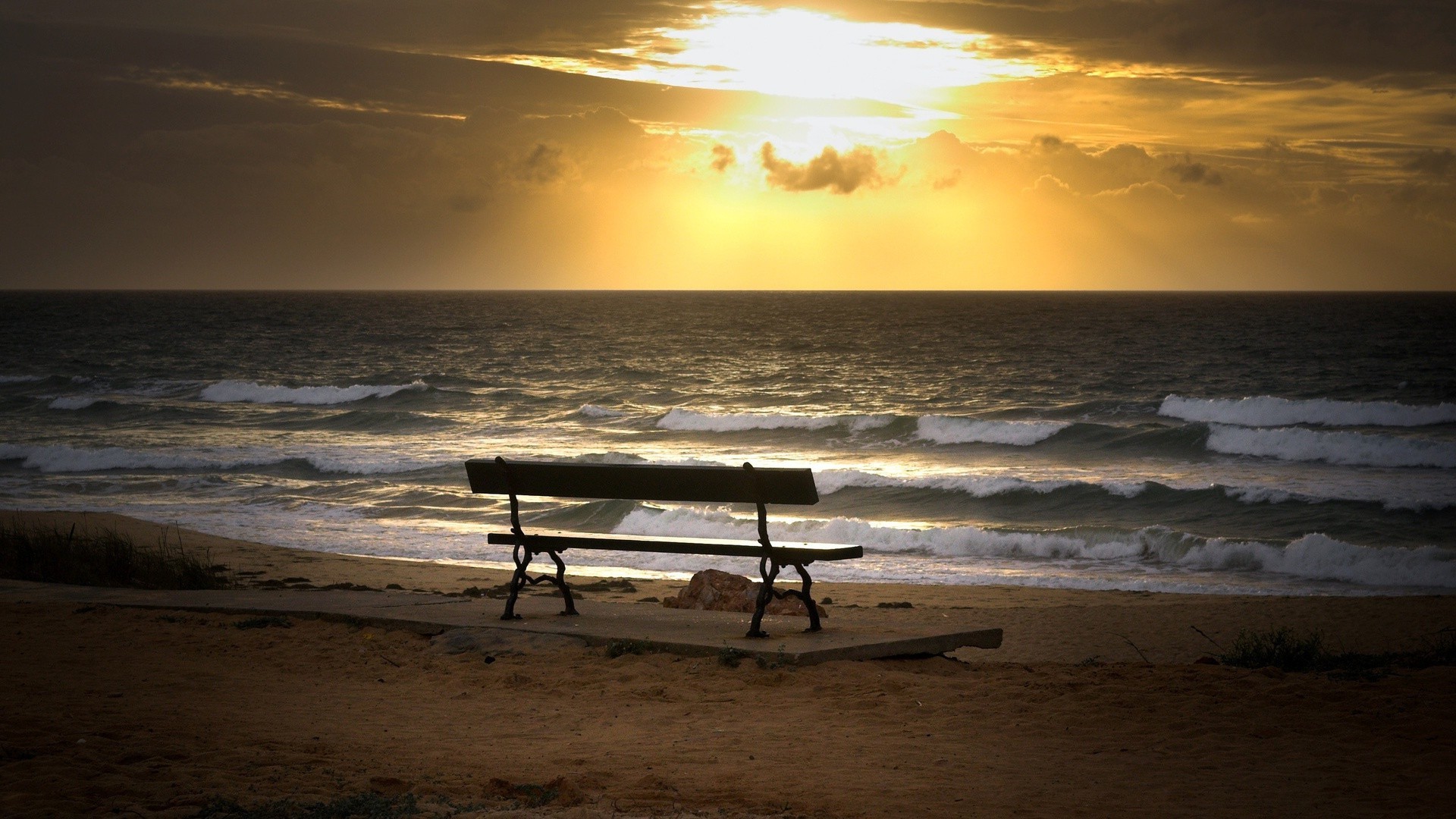 Piaszczysta plaża nad oceanem z kamiennymi blokami
