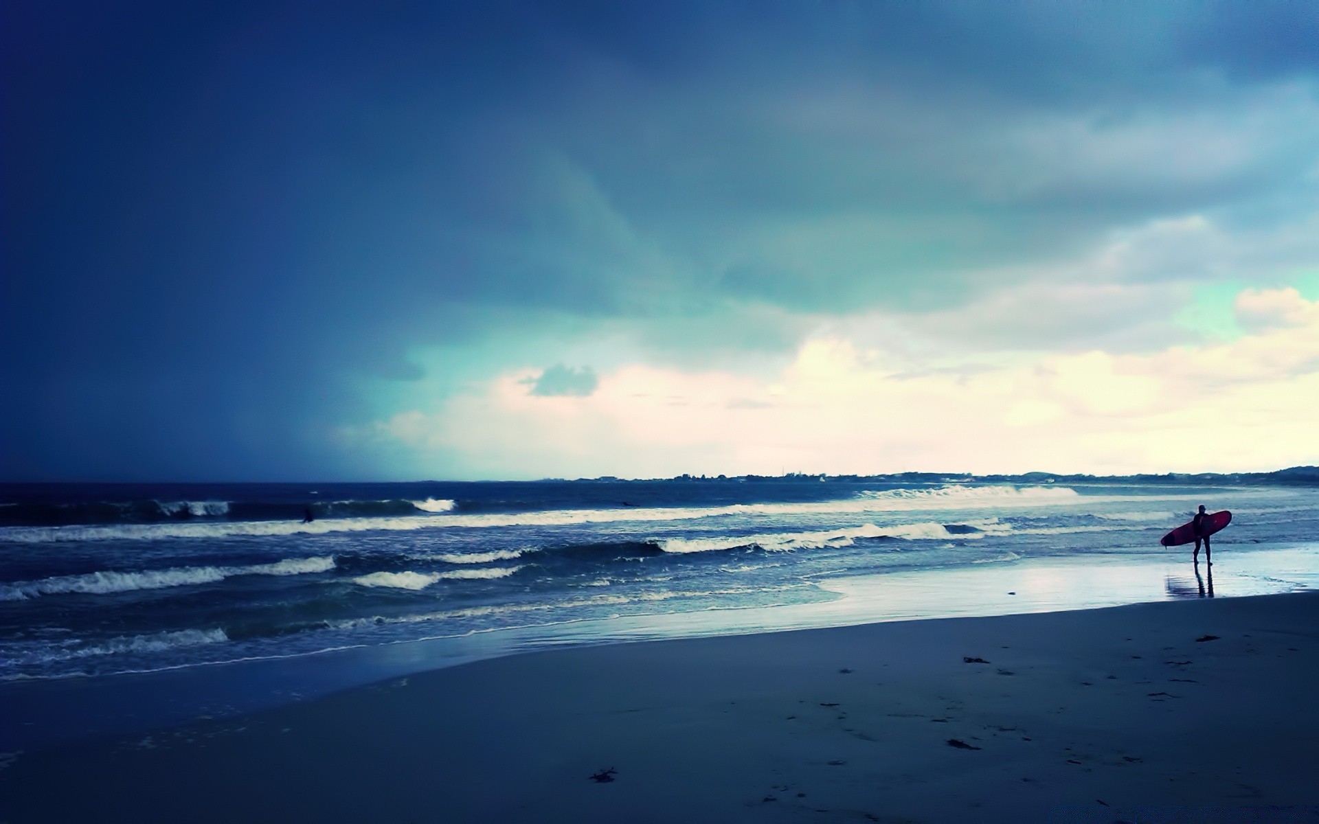Surfer z deską w ręku nad morzem