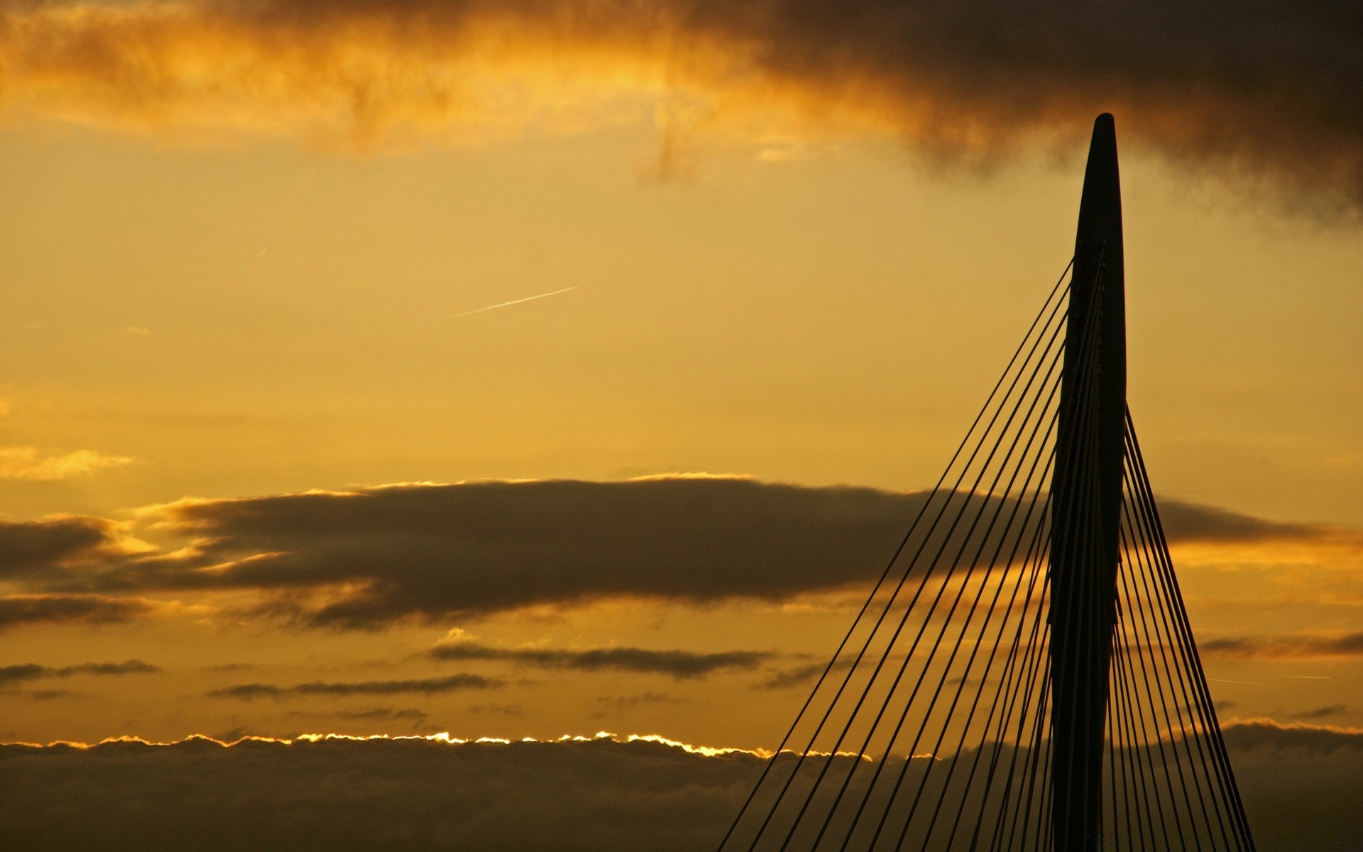 Różowy i pomarańczowy zachód słońca z drzewami na pierwszym planie