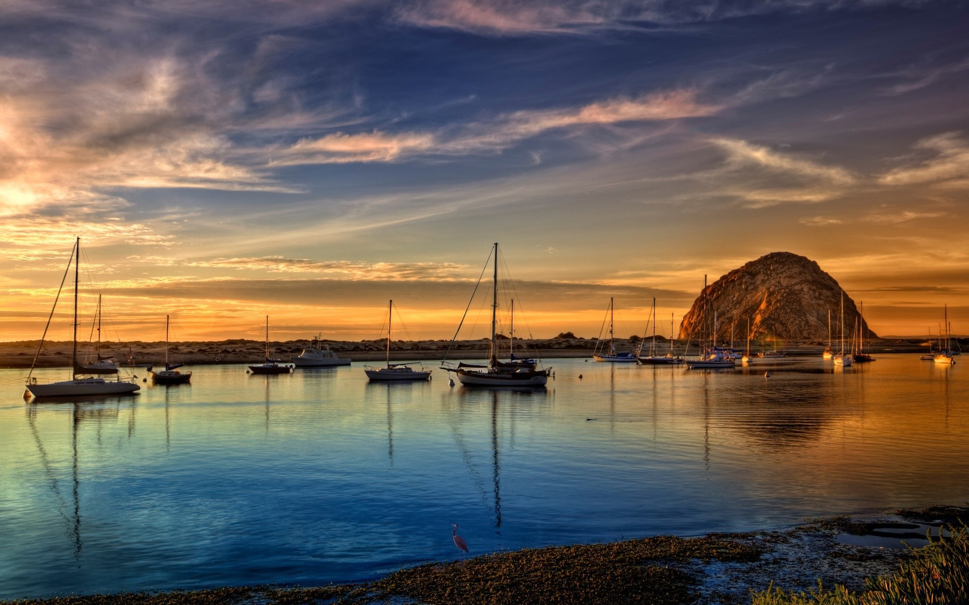 Naturalny krajobraz z zachodem słońca na horyzoncie wody