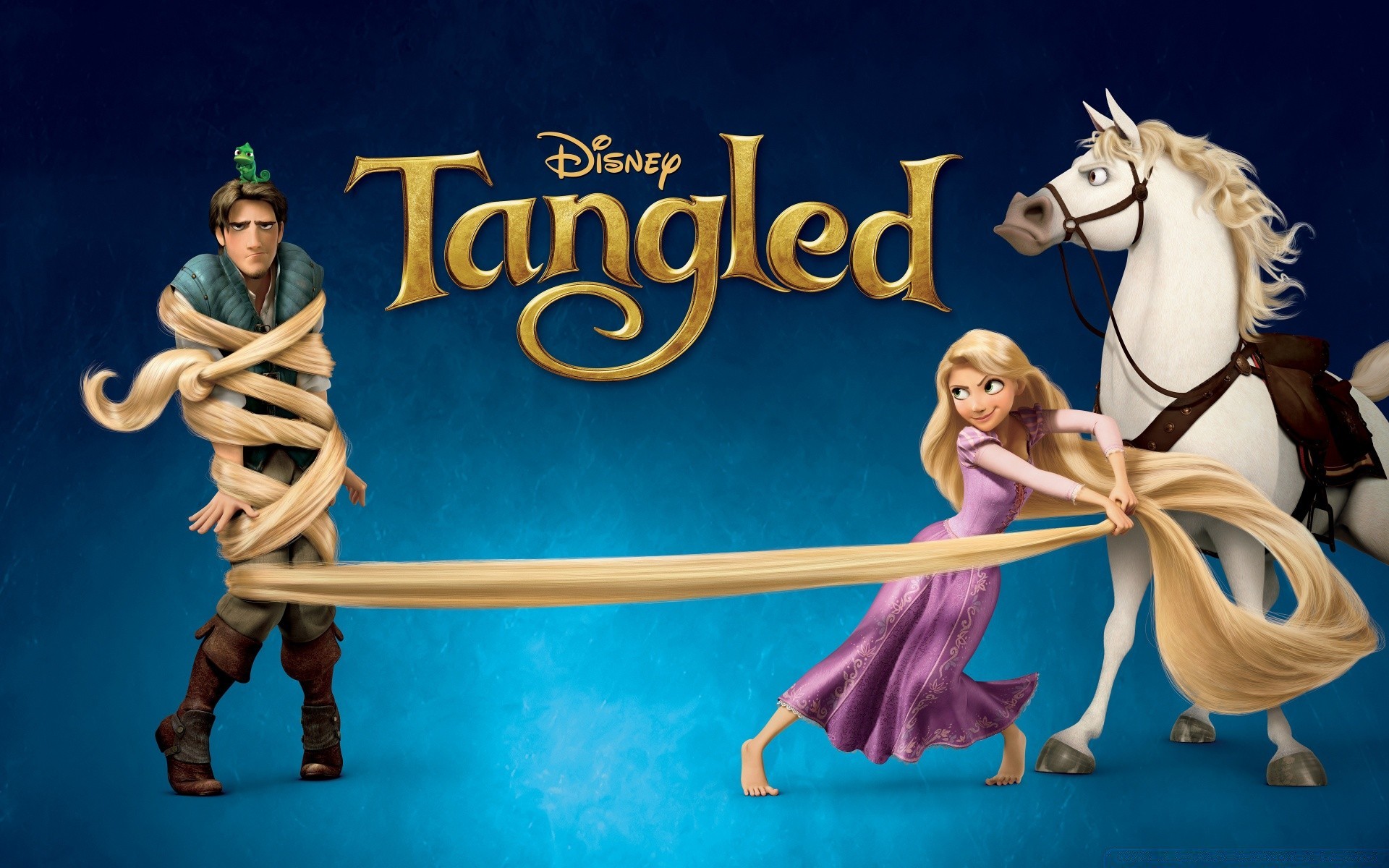 Zdjęcie z kreskówki Roszpunka z wizerunkiem konia na trawie