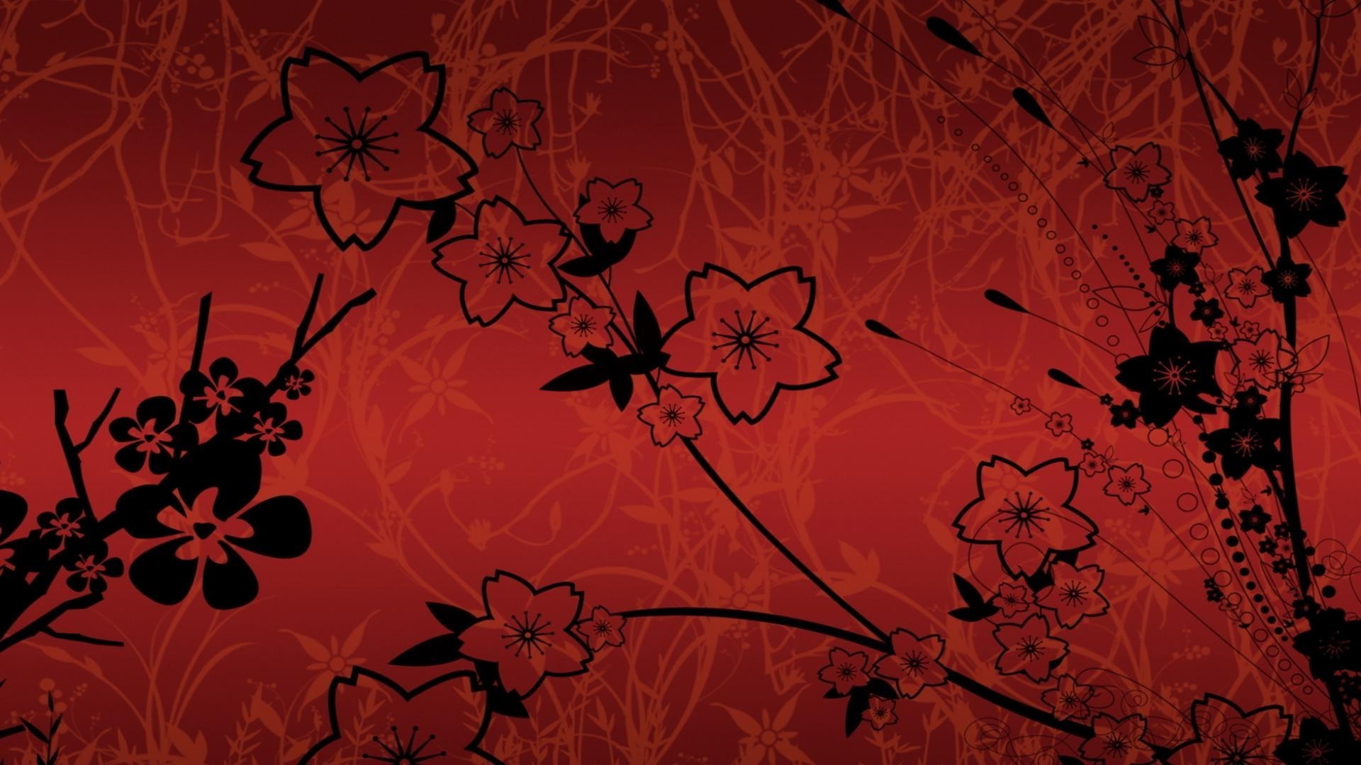 Czerwona tapeta z graffiti kwiatów i płatków