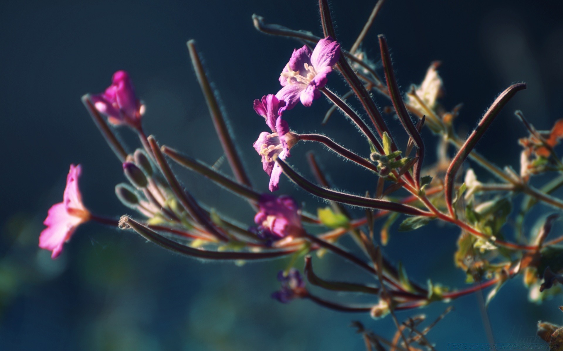Fioletowe kwiaty na gałązkach