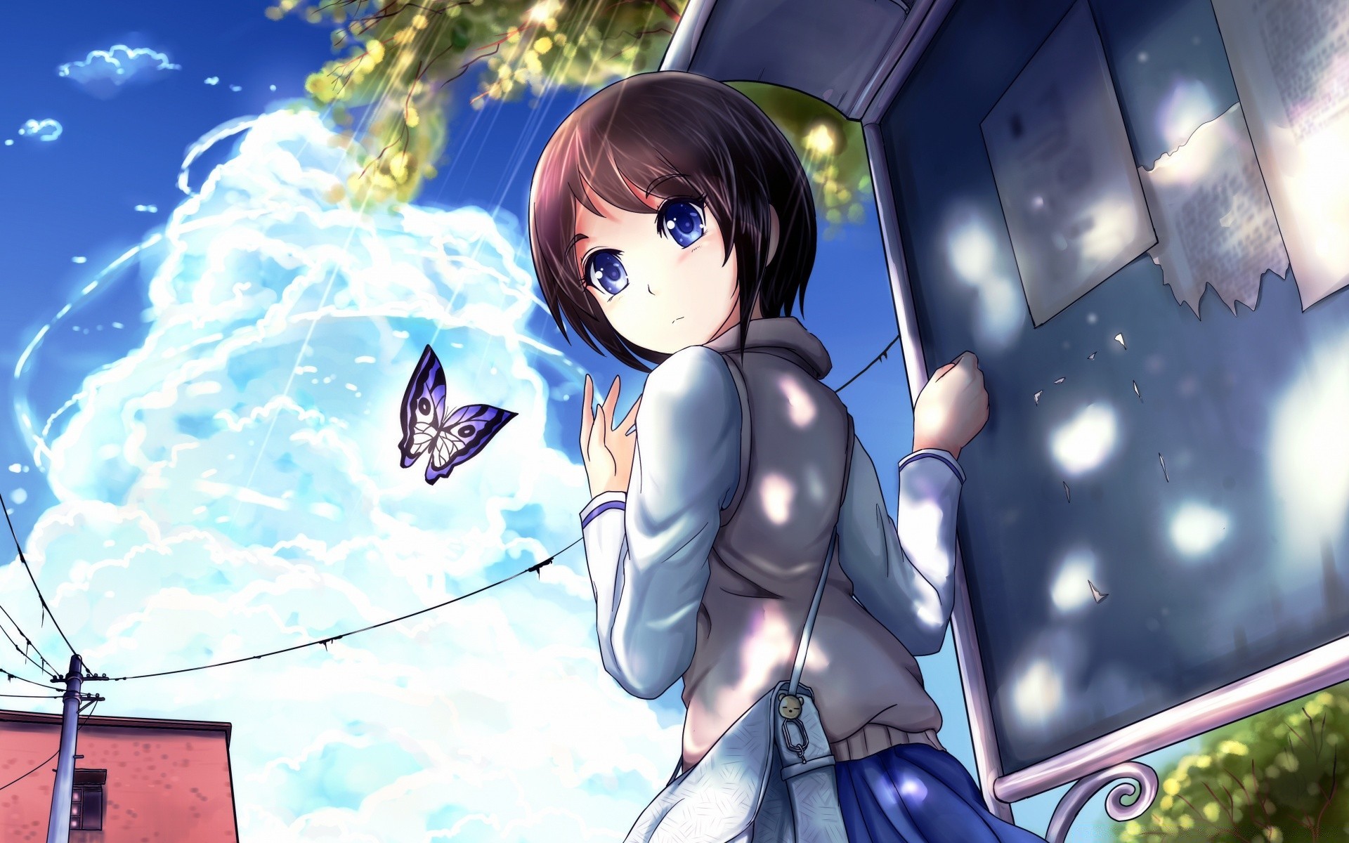 Ciemnowłosa dziewczyna anime na tle płatków śniegu