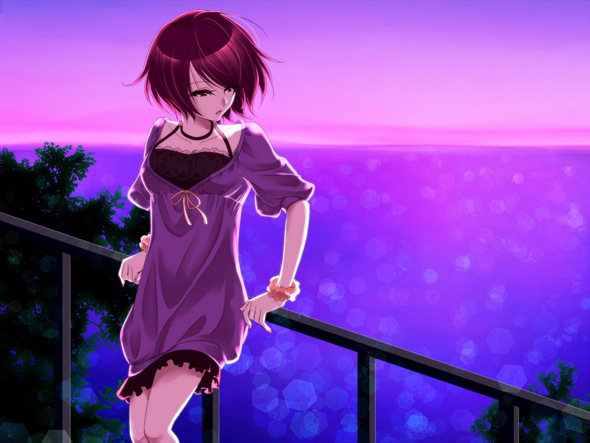 Bohaterka anime w czarnych pończochach na czerwonym tle