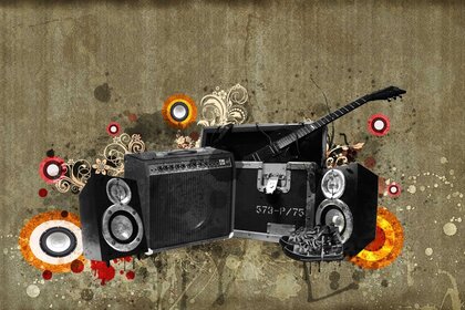 Gitara elektryczna z głośnikami i wzmacniaczem