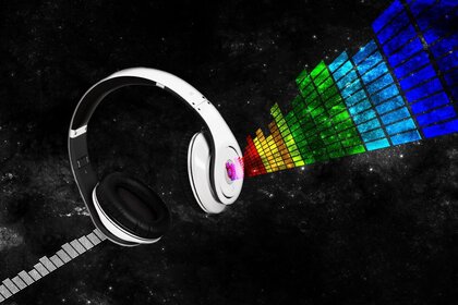 Obraz z białymi słuchawkami i jasnymi liniami